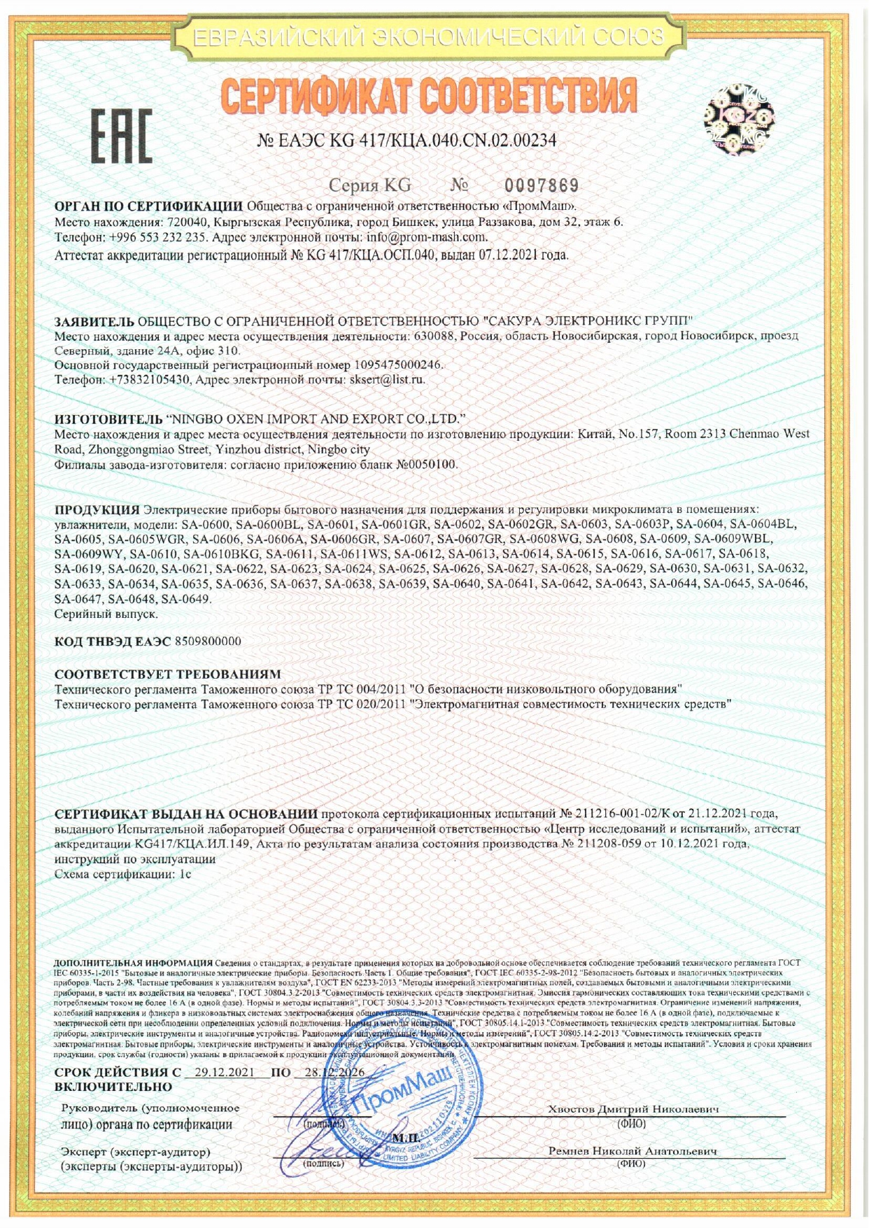 Óâëàæíèòåëü âîçäóõà SA-0609WY 2,0ë