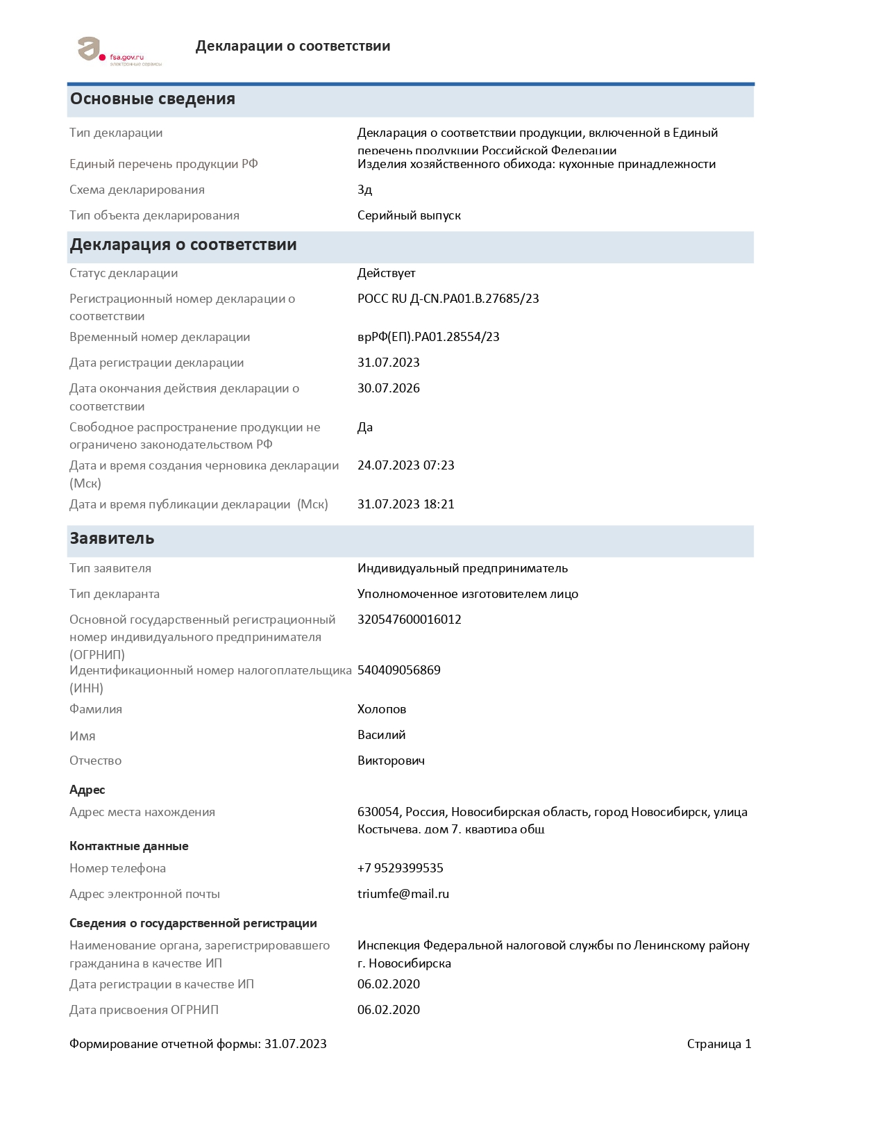 ÐÎÑÑ RU Ä-CN.PA01.B.27685/23 äî 30/07/2026