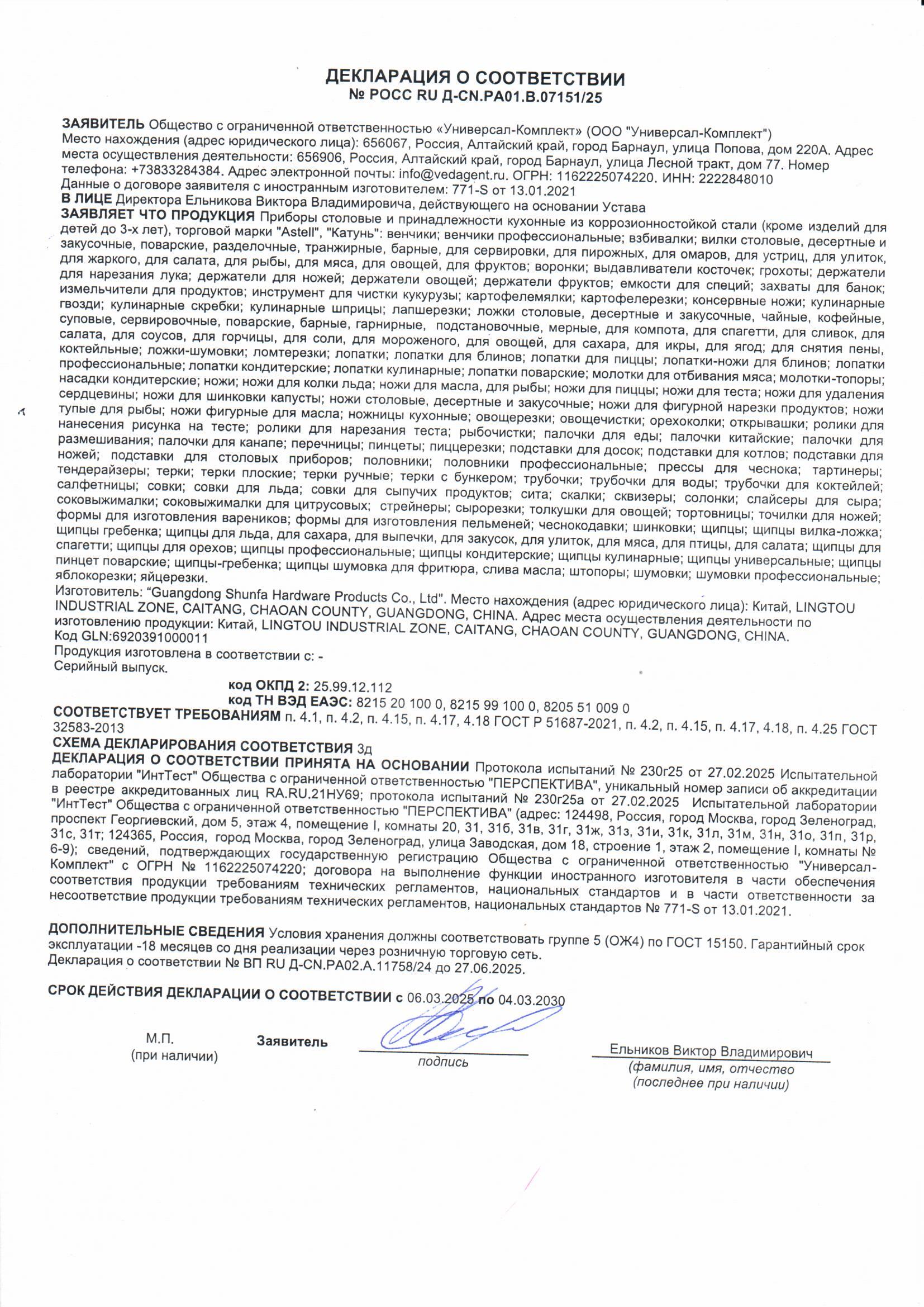 ÐÎÑÑ RU Ä-CN.ÐÀ01.Â.07151/25 äî 04/03/2030
