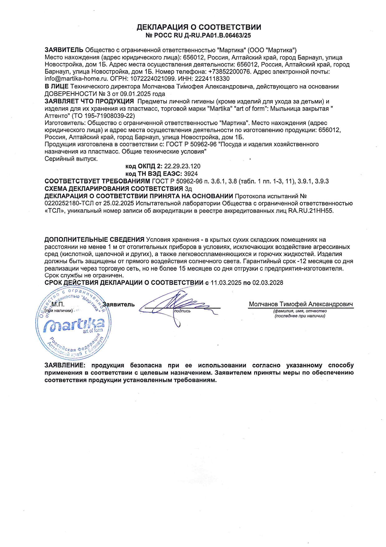 POCC RU Ä-RU.PA01.8.06463/25 äî 02/03/2028