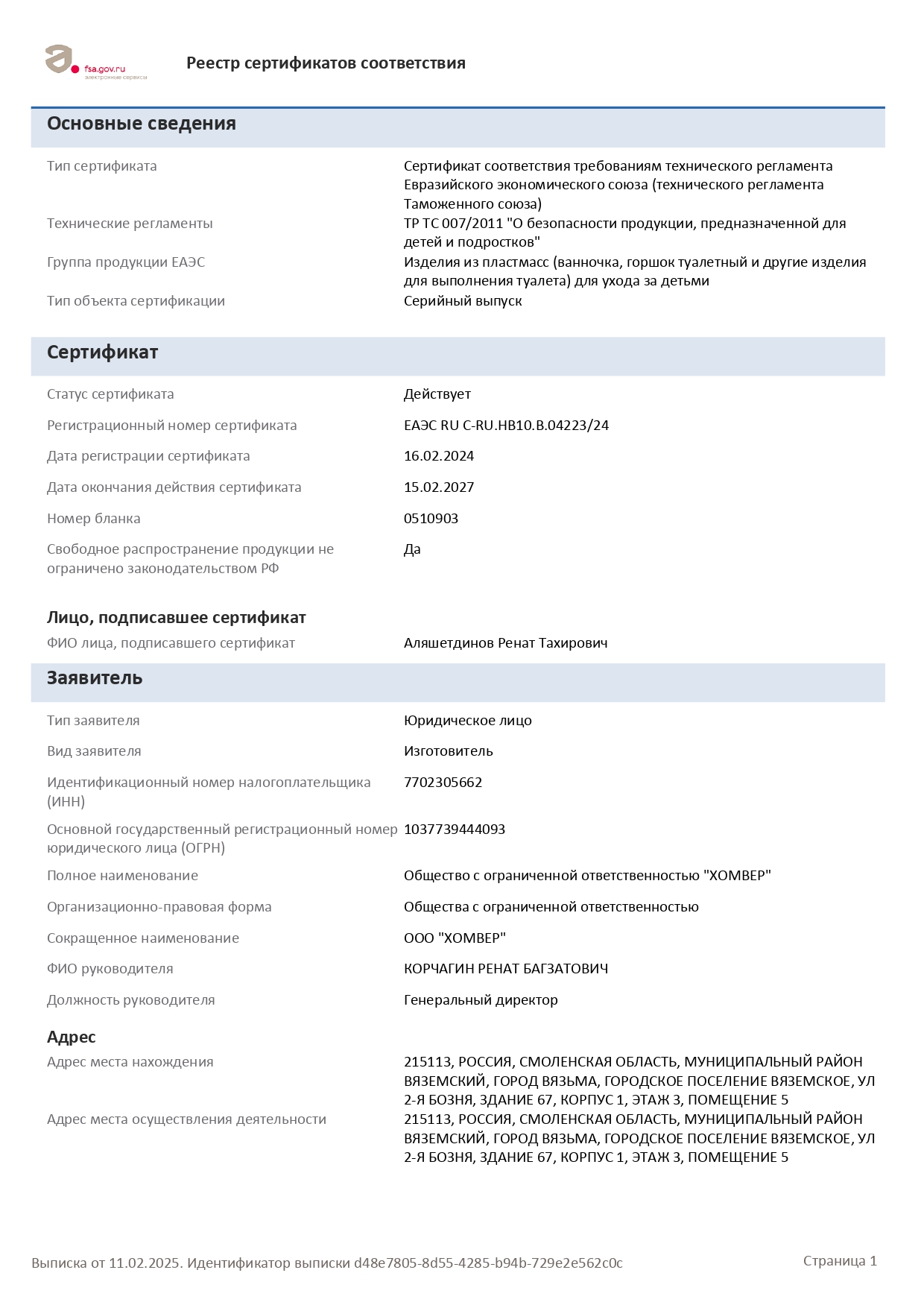 ÅÀÝÑ RU Ñ-RU.ÍÂ10.Â.04223/24 äî 15/02/2027