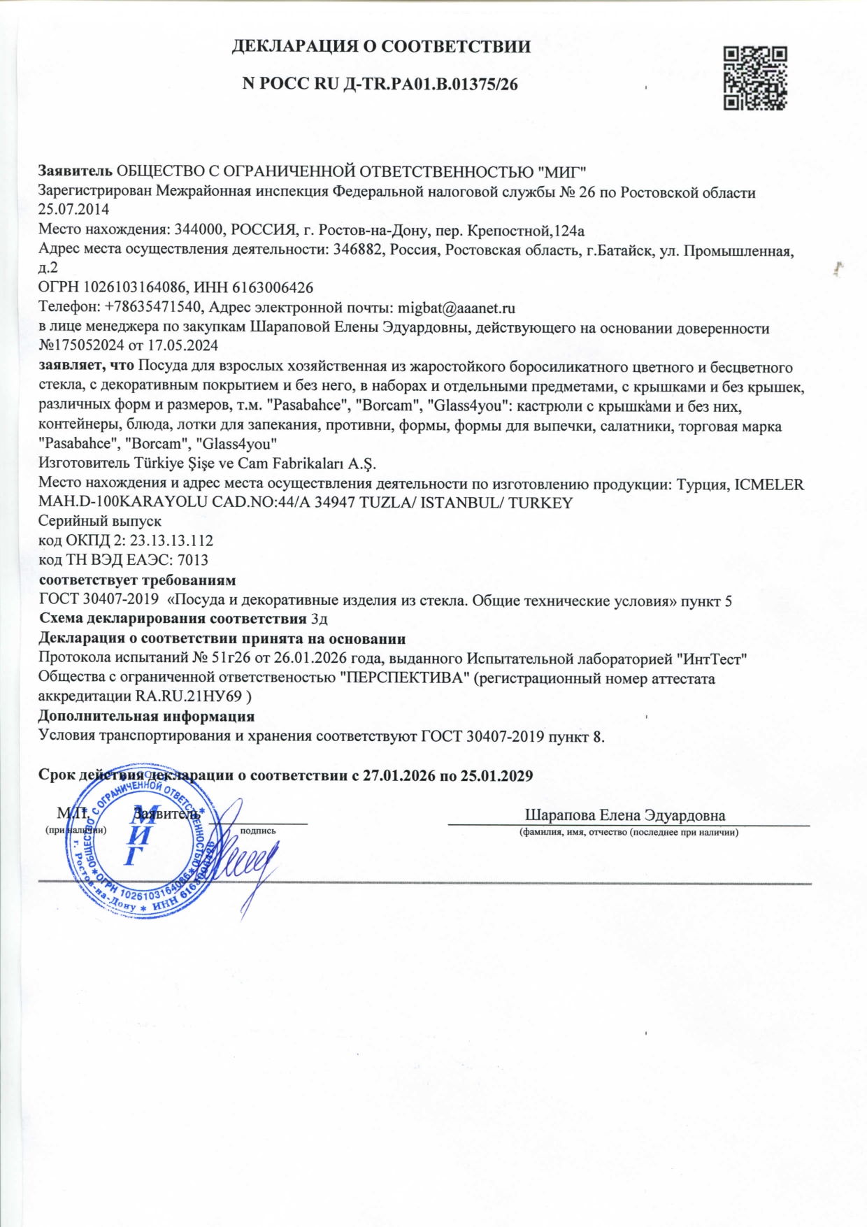 POCC RU A-TR.PA01.B.01375/26 äî 25/01/2029