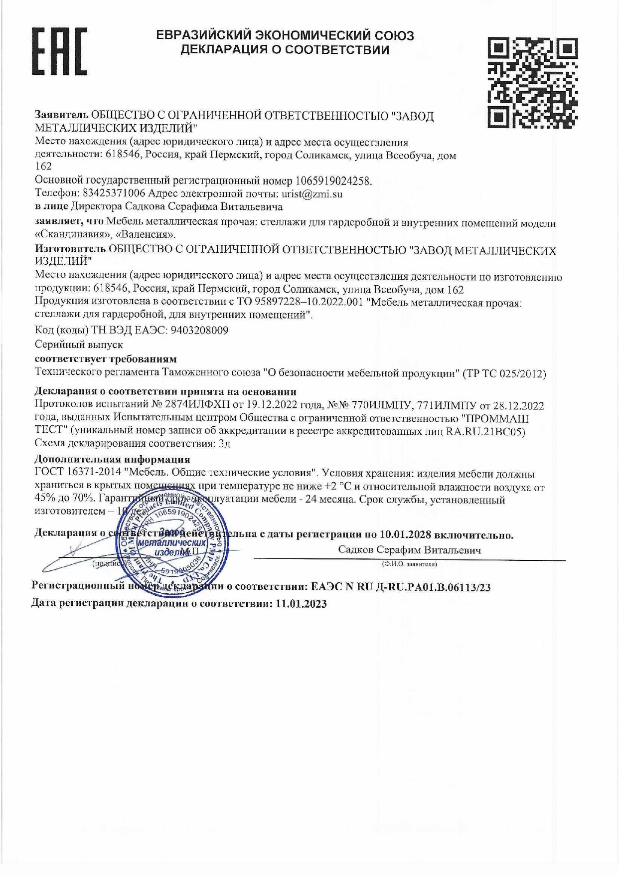 EAÝÑ N RU Ä-RU.PA01.B.06113/23 äî 10/01/2028