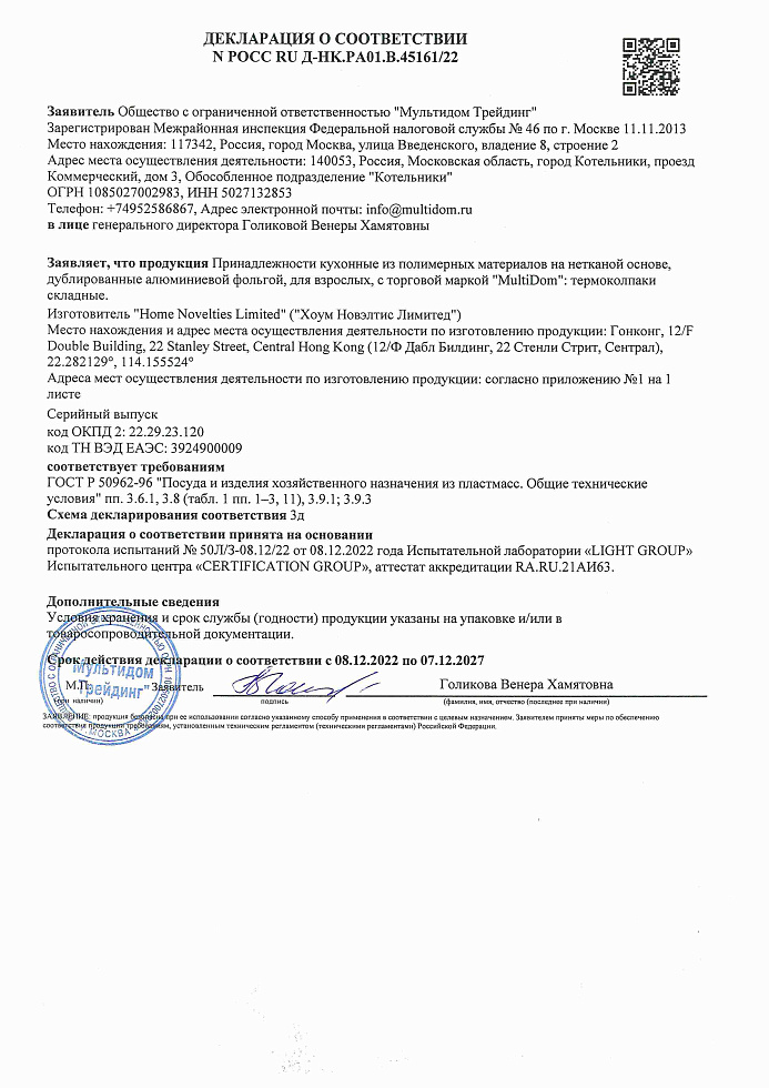 ÐÎÑÑ RU Ä-HK.ÐÀ01.Â.45161/22 äî 07/12/2027