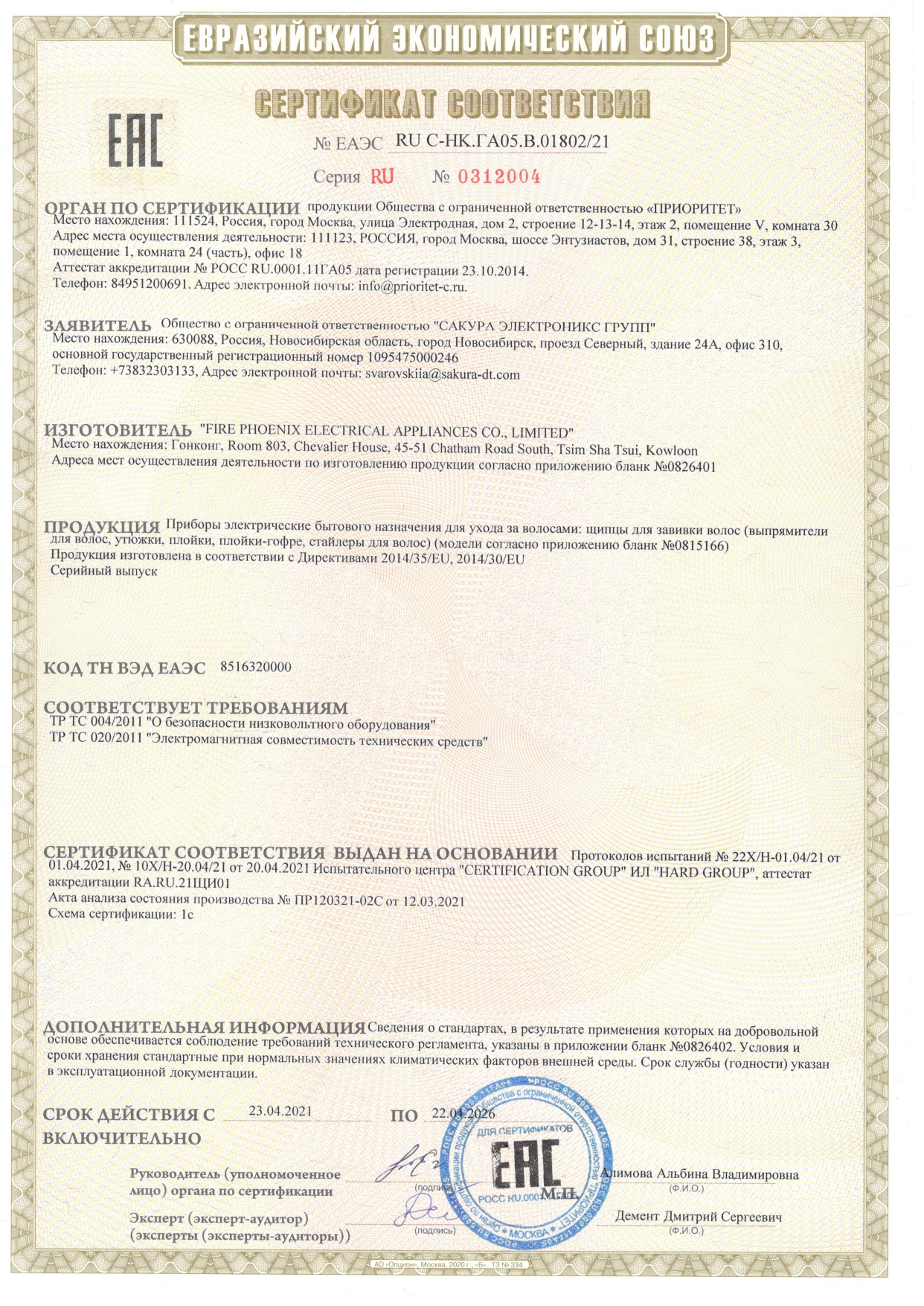 ÅÀÝÑ RU Ñ-HK.ÃÀ05.Â.01802/21 äî 22/04/2026