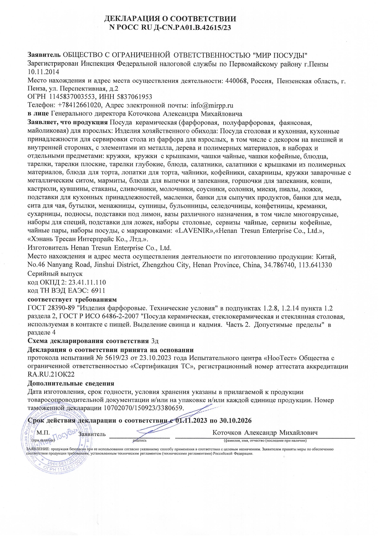 ÐÎÑÑ RU Ä-CN.ÐÀ01.Â.42615/23 äî 30/10/2026