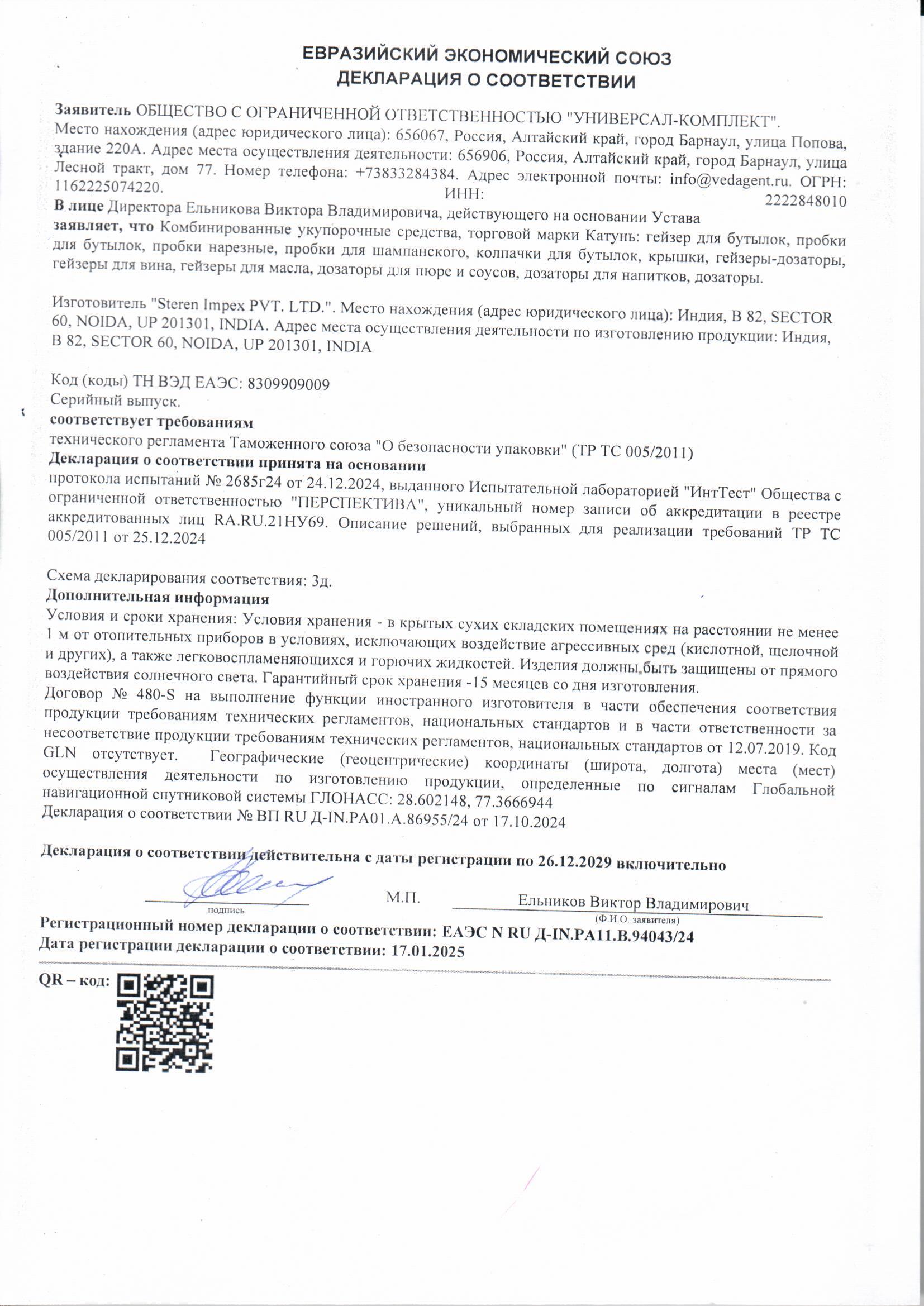 ÅÀÝÑ N RU Ä-IN.ÐÀ11.Â.94043/24 äî 26/12/2029