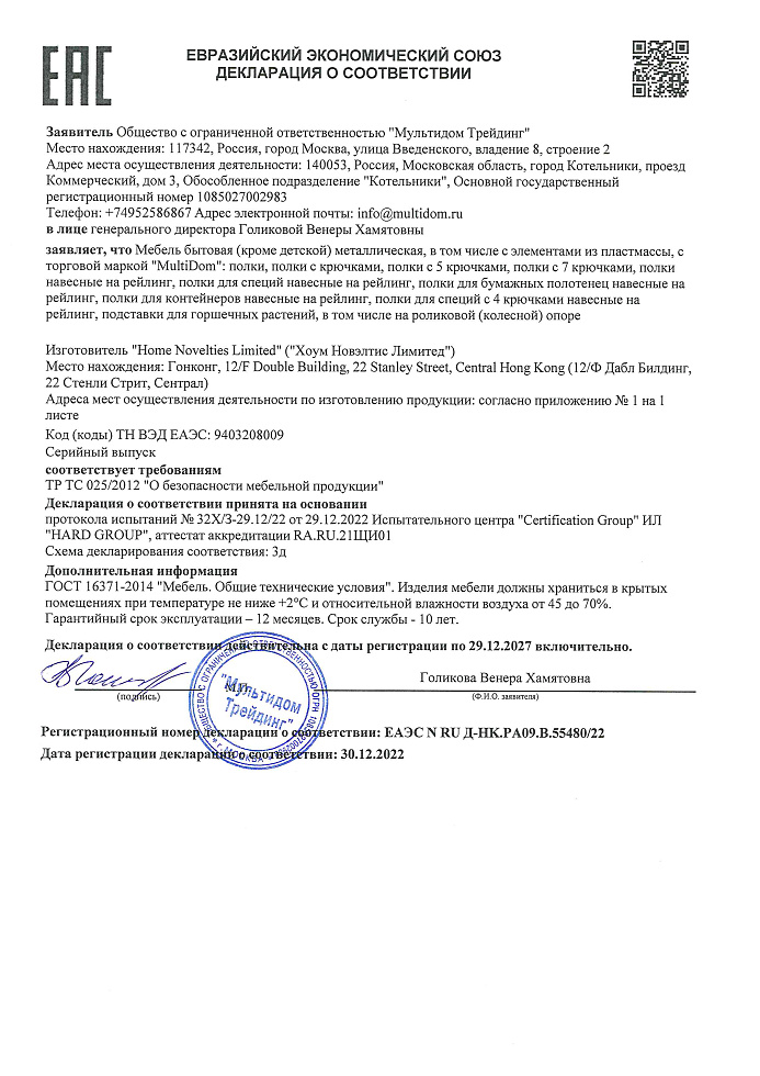 ÅÀÝÑ N RU Ä-HK.ÐÀ09.Â.55480/22 äî 29/12/2027