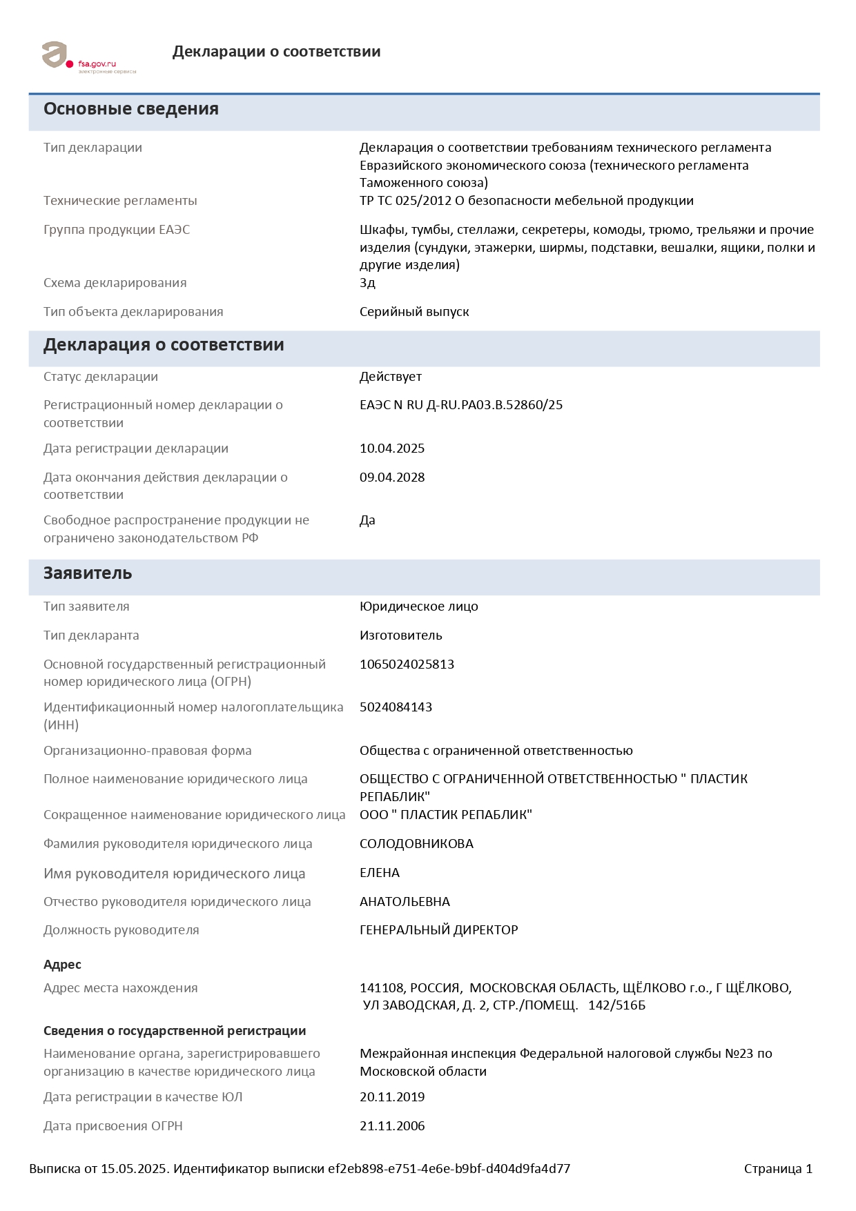 - Ïðîèçâîäèòåëü: ÏËÀÑÒÈÊ ÐÅÏÀÁËÈÊ