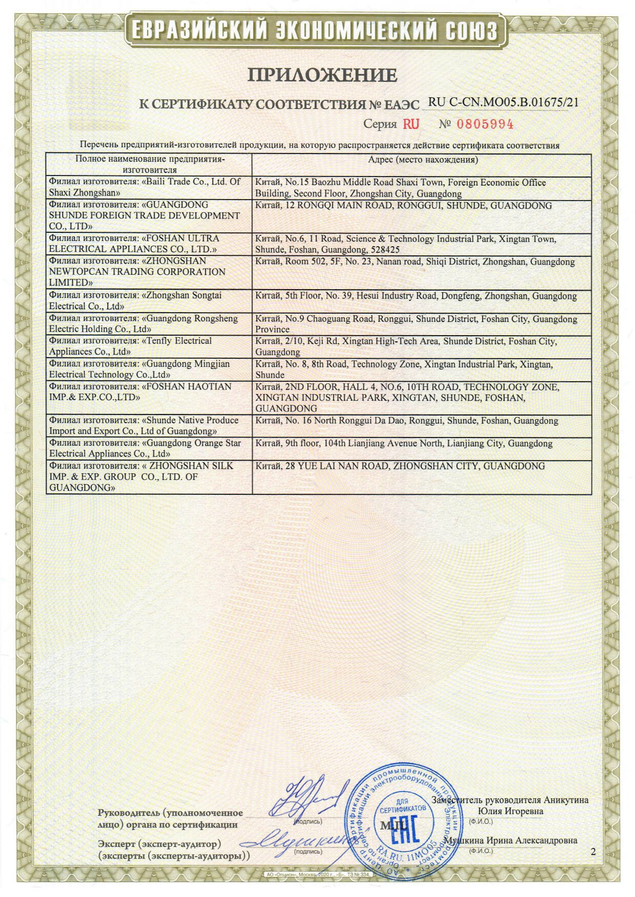 ÅÀÝÑ RU C-CN.ÌÎ05.Â.01675/21 äî 19/01/2026