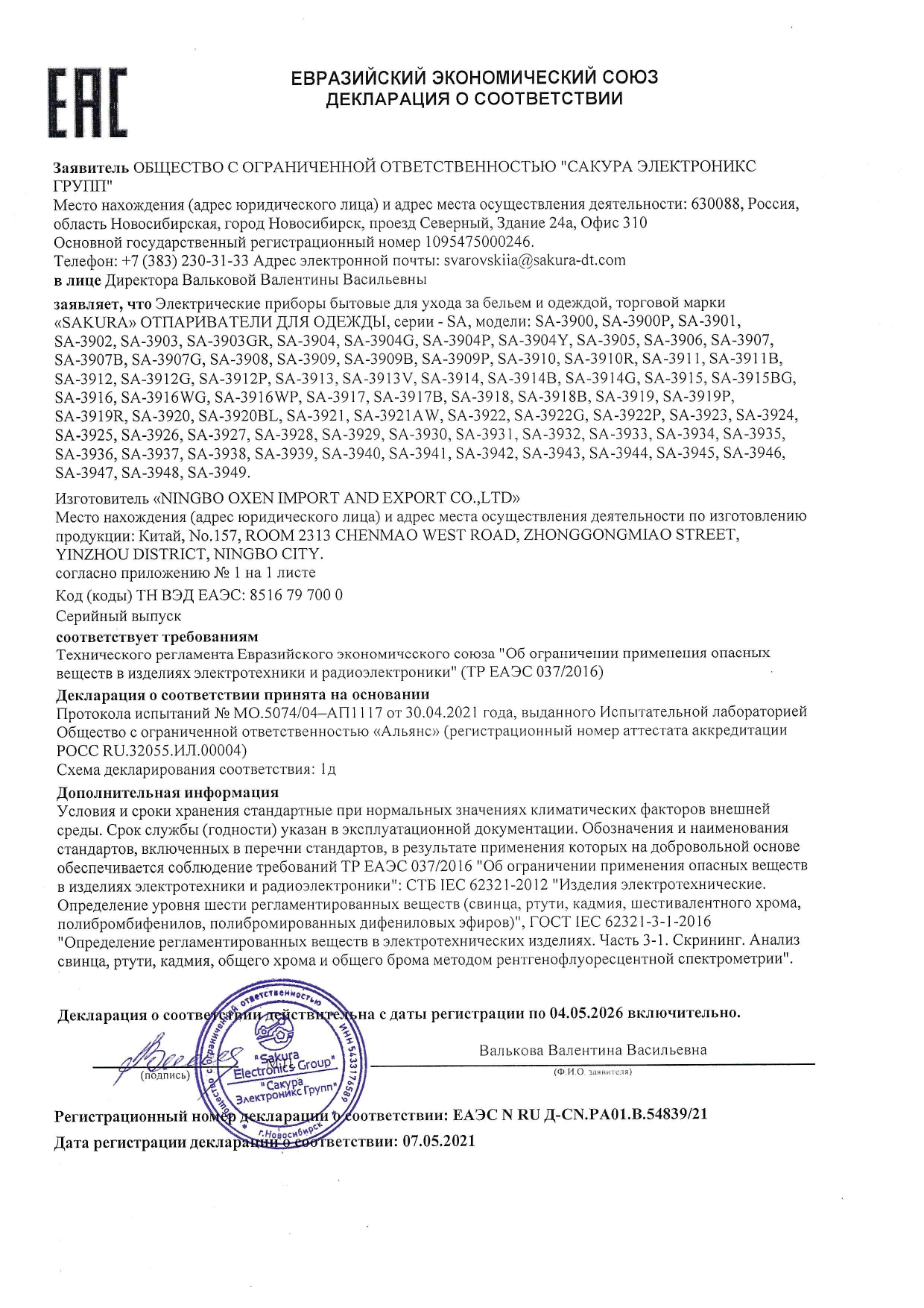 EAÝÑ N RU Ä-CN.PA01.B.54839/21 äî 04/05/2026