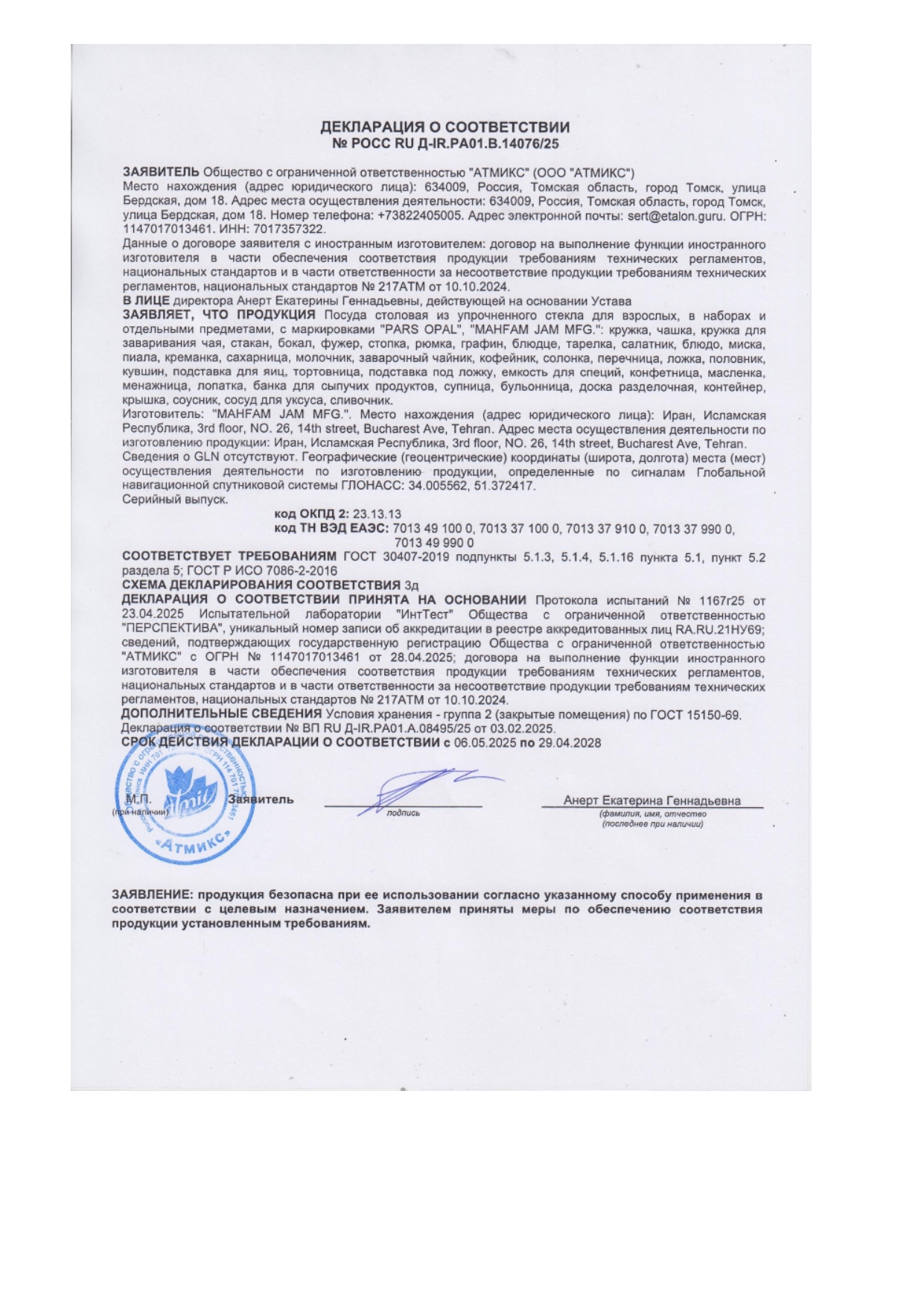 POCC RU Ä-IR.PA01.Â.14076/25 äî 29/04/2028
