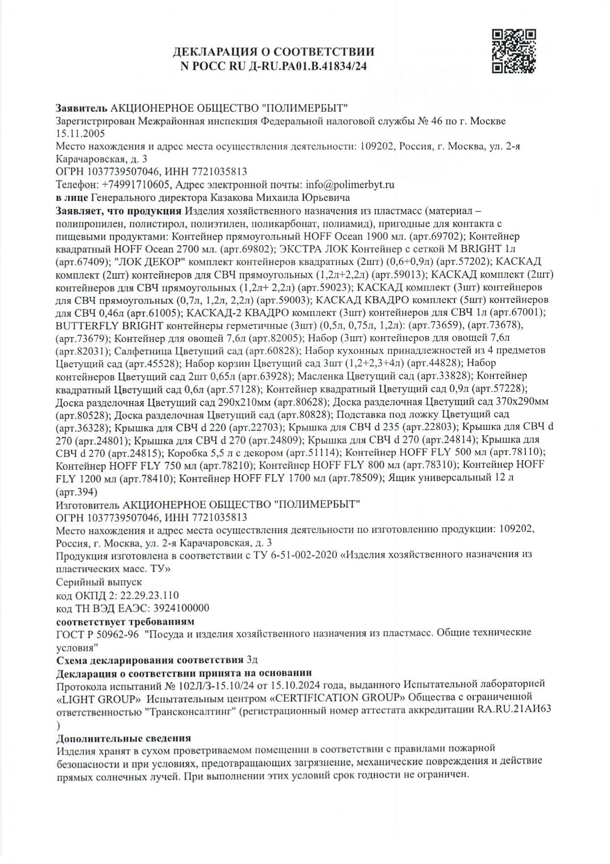POCC RU A-RU.PA01.B.41834/24 äî 15/10/2027