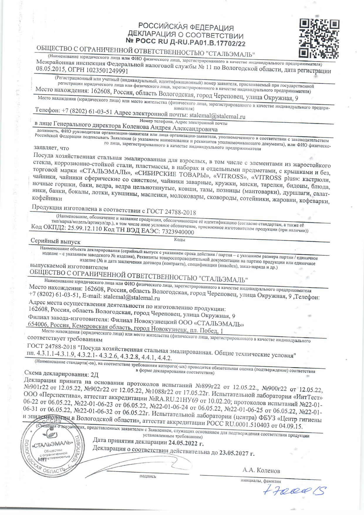 ÐÎÑÑ RU Ä-RU.ÐÀ01.Â.17702/22 äî 23/05/2027