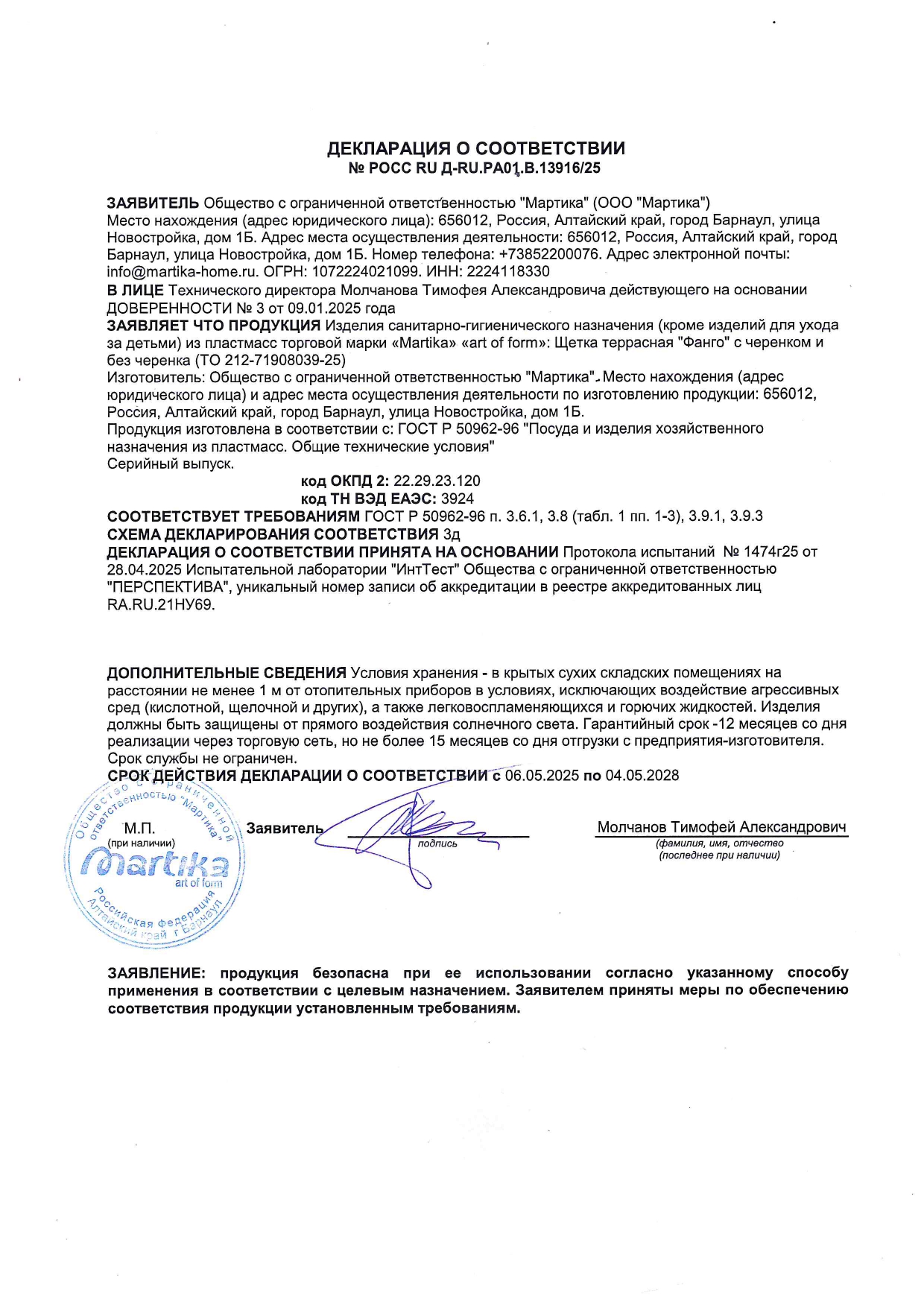POCC RU A-RU.PA01.Â.13916/25 äî 04/05/2028