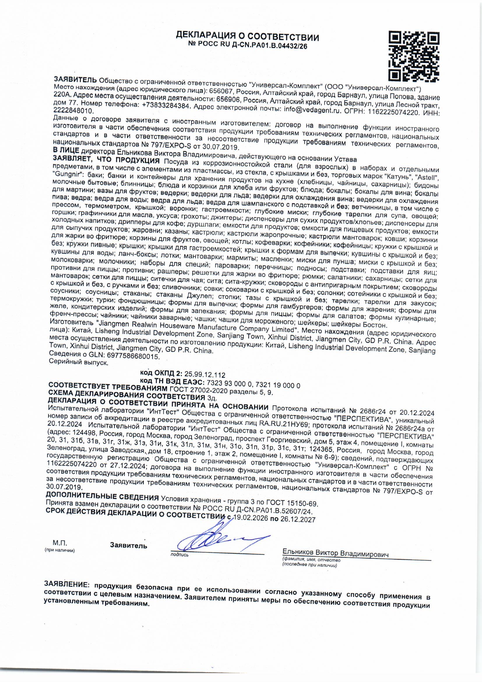 ÐÎÑÑ RU Ä-CN.ÐÀ01.Â.04432/26 äî 26/12/2027