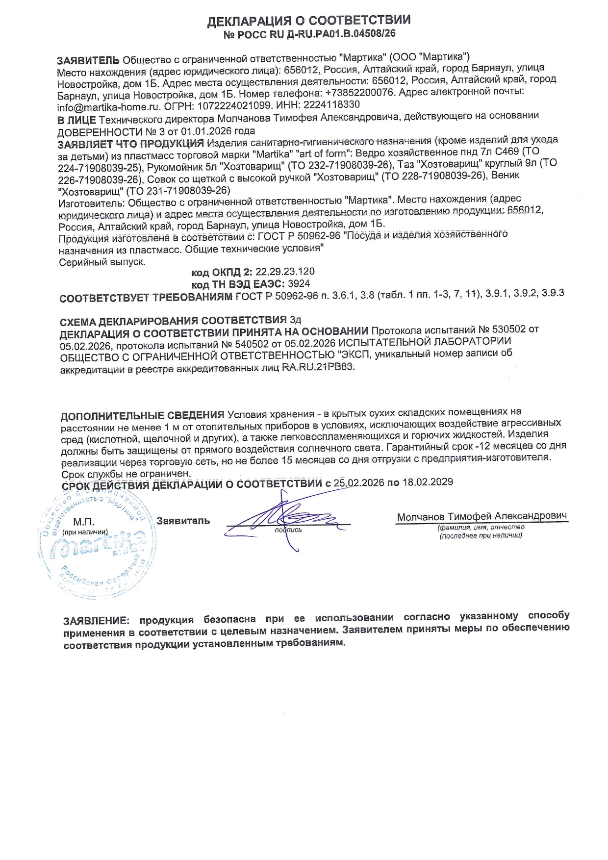 ÐÎÑÑ RU A-RU.PA01.B.04508/26 äî 18/02/2029
