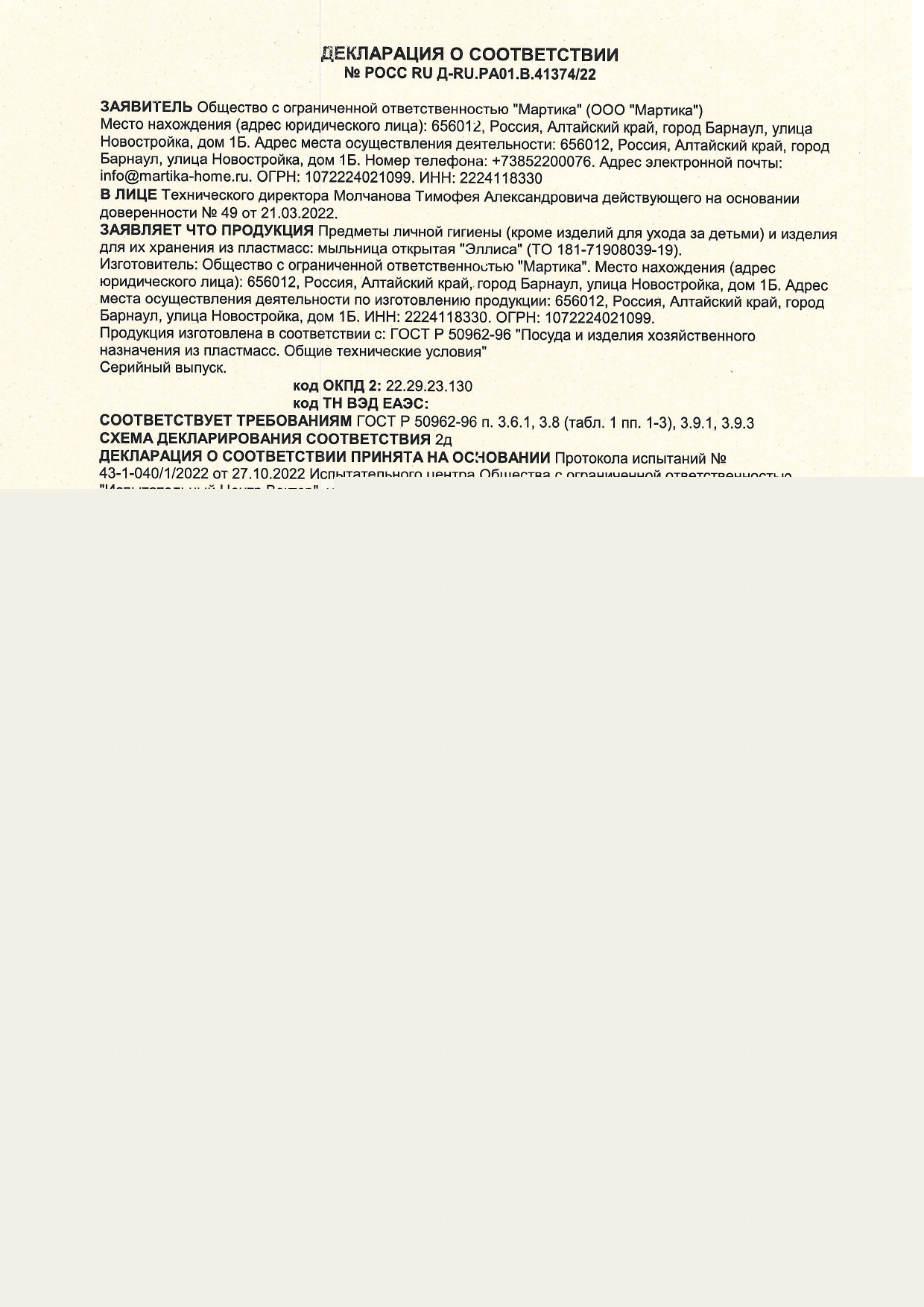 ÐÎÑÑ RU Ä-RU.ÐA01.B.41374/22 äî 15/11/2025