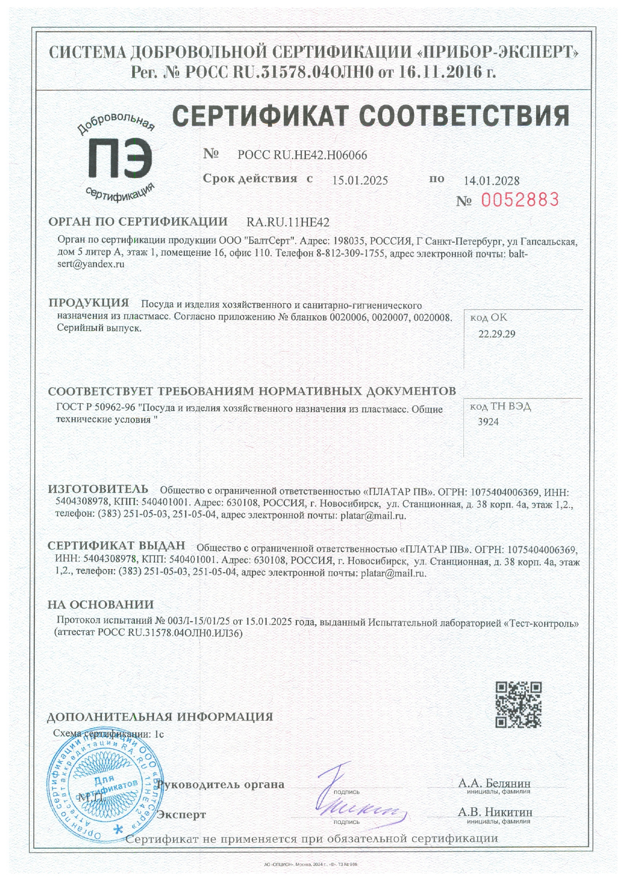 ÐÎÑÑ RU.ÍÅ42.Í06066 äî 14/01/2028