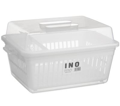 Ñóøèëêà äëÿ ïîñóäû îò ÒÌ Inomata âûïîëíåíà èç âûñîêîêà÷åñòâåííîãî ïðî÷íîãî ïëàñòèêà. Ñóøèëêà âêëþ÷àåò â ñåáÿ êîíòåéíåð ñ êðûøêîé è êîðçèíó ñ îòâåðñòèÿìè äëÿ ñòåêàíèÿ âîäû. Êðûøêà íàäåæíî çàêðûâàåò ñóøèëêó, íå ïîçâîëÿÿ ïðîíèêàòü âíóòðü íàñåêîìûì è ïûëè, ÷òî î÷åíü óäîáíî íà äà÷å èëè îòêðûòîé âåðàíäå. Êîðçèíó ìîæíî èñïîëüçîâàòü îòäåëüíî â êà÷åñòâå òàçà äëÿ ìûòüÿ è çàìà÷èâàíèÿ ïîñóäû, ìûòüÿ ôðóêòîâ è îâîùåé èëè õðàíåíèÿ ïðîäóêòîâ. Óäîáíûå ðó÷êè ïîçâîëÿþò ëåãêî ïåðåíîñèòü ñóøèëêó ïðè íåîáõîäèìîñòè. ¨ìêîñòü êîíòåéíåðà 12 ë. Âûäåðæèâàåò ïåðåïàäû òåìïåðàòóðû îò +120 äî -20 ãðàäóñîâ. Ñäåëàíî â ßïîíèè.