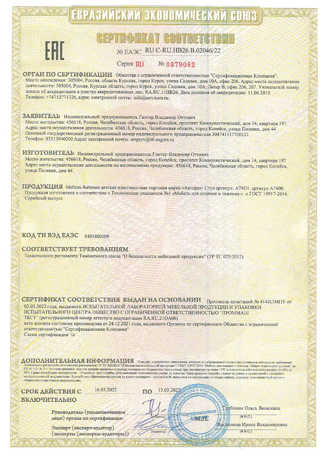 RU C-RU.ÍB26.B.02046/22 äî 15/03/2027