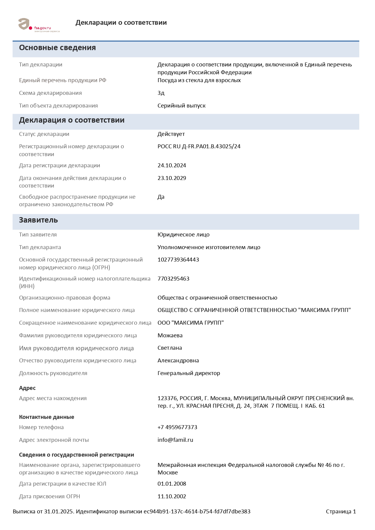 ÐÎÑÑ RU Ä-FR.ÐÀ01.Â.43025/24 äî 23/10/2029