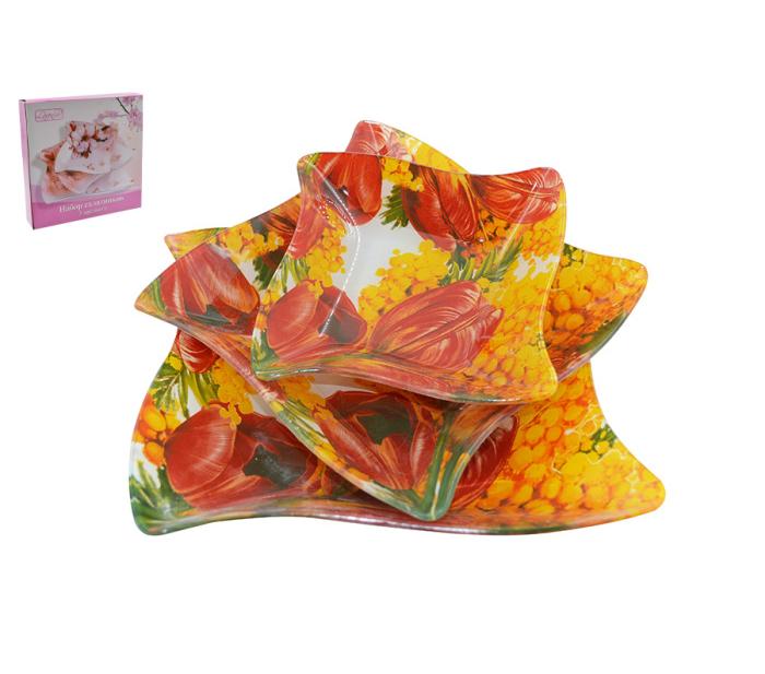 Íàáîð ñàëàòíèêîâ 3ïð (15+20+23ñì) êâàäð [ÊÐÀÑÍÛÅ ÒÞËÜÏÀÍÛ] ñòåêëî