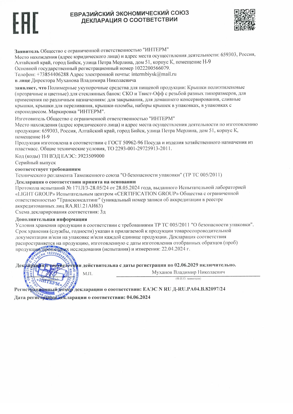 ÅÔÝÑ N RU Ä-RU.ÐÀ04.Â.82097/24 äî 02/06/2029
