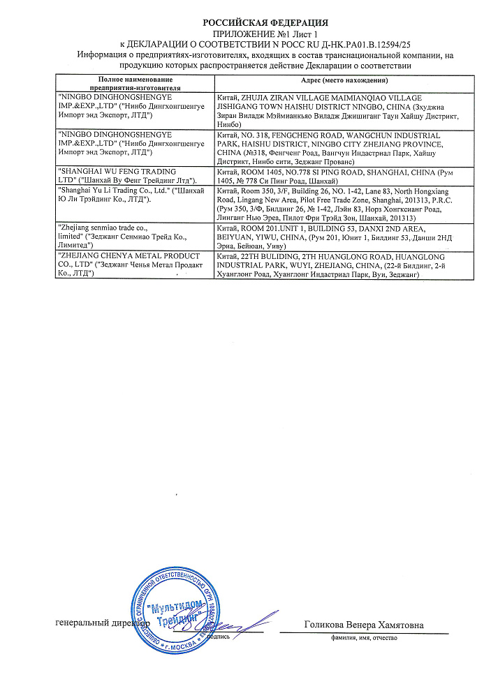 ÐÎÑÑ RU Ä-HK.ÐÀ01.Â.12594/25 äî 23/04/2030