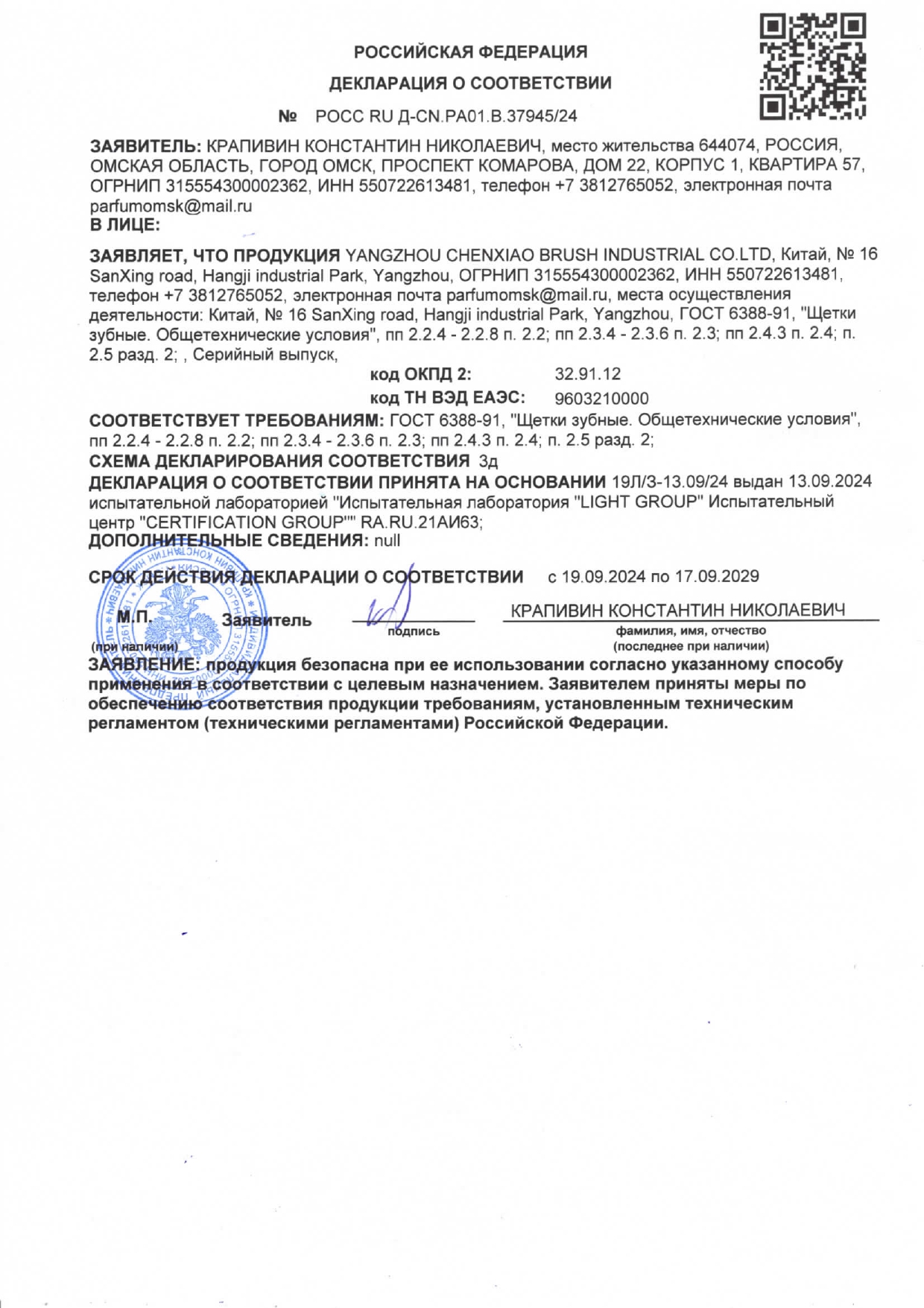 ÐÎÑÑ RU Ä-CN.ÐÀ01.Â.37945/24 äî 17/09/2029