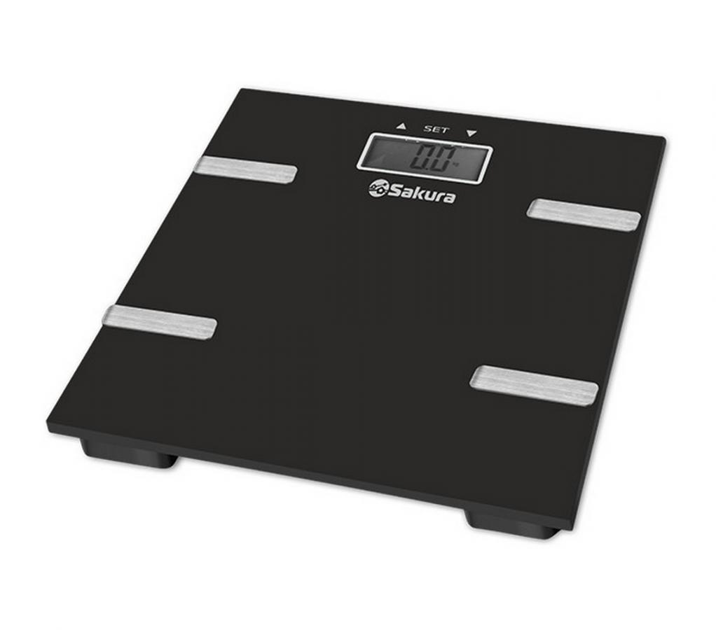 Âåñû áûòîâûå íàïîëüíûå ýëåêòðîííûå SA-5073BK 180êã ýëåê ÷åðí , öåíà äåëåíèÿ 100 ã, óëüòðàòîíêèé êîðïóñ èç çàêàëåííîãî ñòåêëà, ðàçìåðû âåñîâ 280õ280õ18 ìì, äîï. ôóíêöèÿ ó÷¸òà ïðîöåíòíîé äîëè æèðà, âîäû, êîñòíîé è ìûøå÷íîé ìàññû, ñ÷¸ò÷èê êàëîðèé, ÆÊ äèñïëåé
