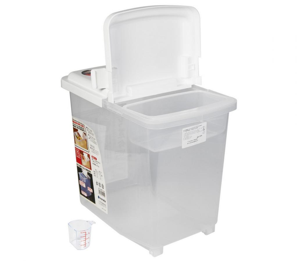Êîíòåéíåð èç âûñîêîêà÷åñòâåííîãî ïëàñòèêà èäåàëüíî ïîäõîäèò äëÿ õðàíåíèÿ ñûïó÷èõ ïðîäóêòîâ: ìàêàðîíû, êðóïû, ìóêà èëè äàæå ñðåäñòâà äëÿ ñòèðêè. Áëàãîäàðÿ ïðÿìîóãîëüíîé ôîðìå íå çàíèìàåò ìíîãî ìåñòà, à ïðîçðà÷íûå ñòåíêè ïîçâîëÿþò îòñëåæèâàòü êîëè÷åñòâî ñîäåðæèìîãî. Ãåðìåòè÷íàÿ êðûøêà íå äà¸ò ïðîíèêàòü âëàãå è ïîñòîðîííèì çàïàõàì. Ïðè çàñûïàíèè êðóïû, ñîáåðèòå îñòàòîê ìåðíûì ñòàêàíîì è ïåðåñûïüòå â îòäåëüíûé îòñåê, à çàòåì äîáàâüòå íîâóþ êðóïó.  ìàëåíüêîì êîíòåéíåðå ìîæíî òàê æå õðàíèòü ñïåöèè èëè èñïîëüçîâàòü, êàê ìåðíóþ ¸ìêîñòü, ëåãêî çàêðåïëÿåòñÿ ïîä êðûøêîé è ïåðåìåùàåòñÿ ïî ñïåöèàëüíûì ïîëîçüÿì. Ñïåöèàëüíûé ìåðíûé ñòàêàí ñ ïëîñêîé ñòåíêîé ïîçâîëÿåò ñîáðàòü îñòàòêè êðóïû ñî äíà. Äâîéíàÿ êðûøêà ñ êëàïàíàìè äà¸ò ë¸ãêèé äîñòóï ê ñîäåðæèìîìó è å¸ íå íóæíî ñíèìàòü ïîëíîñòüþ. Ñïåöèàëüíûå ðîëèêè íà äíå ïîçâîëÿþò âûäâèãàòü êîíòåéíåð ïðè íåîáõîäèìîñòè. Îáú¸ì êîíòåéíåðà 16ë; íåáîëüøîé ¸ìêîñòè 1ë, øêàëà äî 800ìë; ìåðíûé ñòàêàí 180 ìë, øêàëà äî 160 ìë. Ñäåëàíî â ßïîíèè.