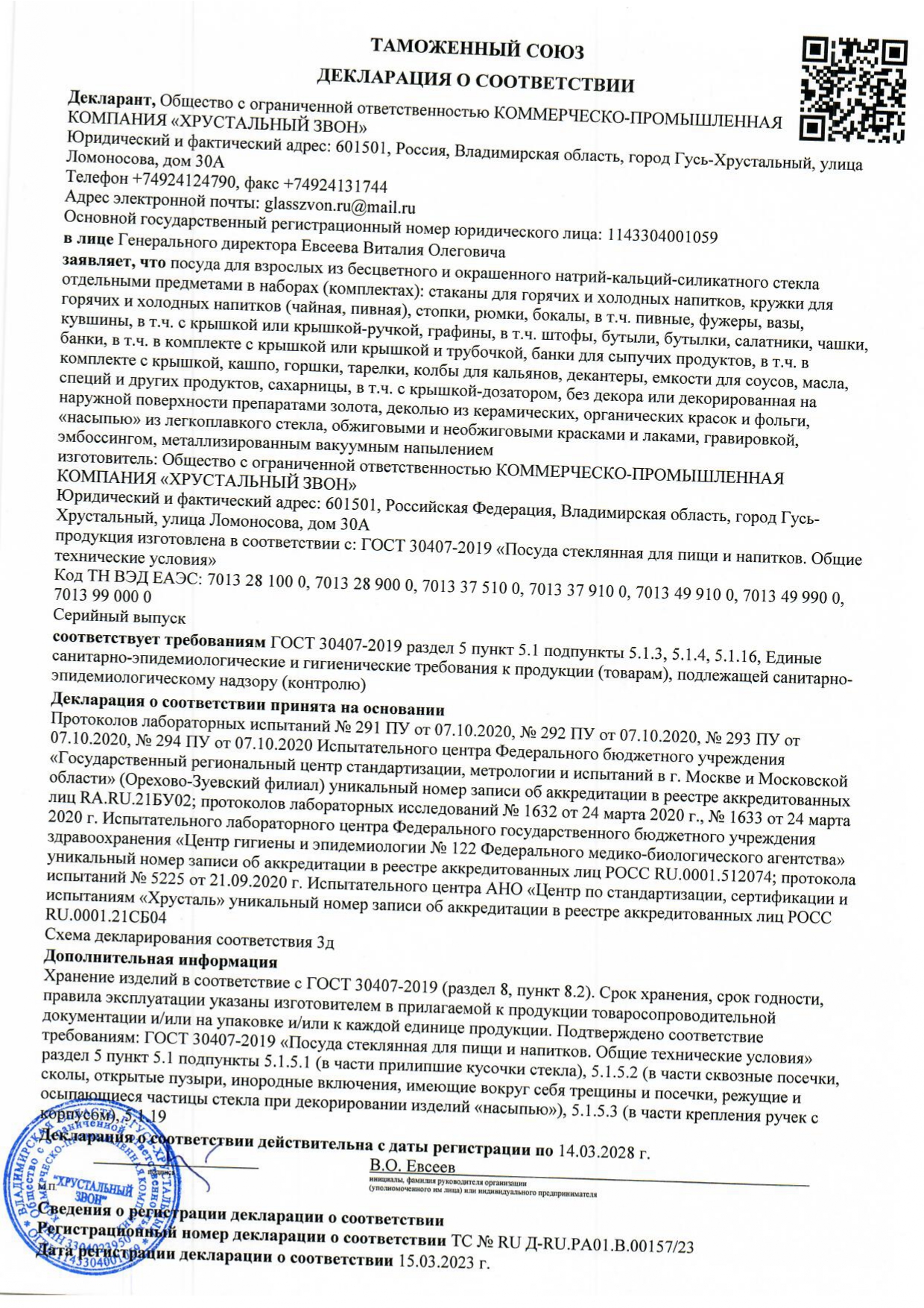 - Ïðîèçâîäèòåëü: ÃÓÑÜ-ÕÐÓÑÒÀËÜÍÛÉ