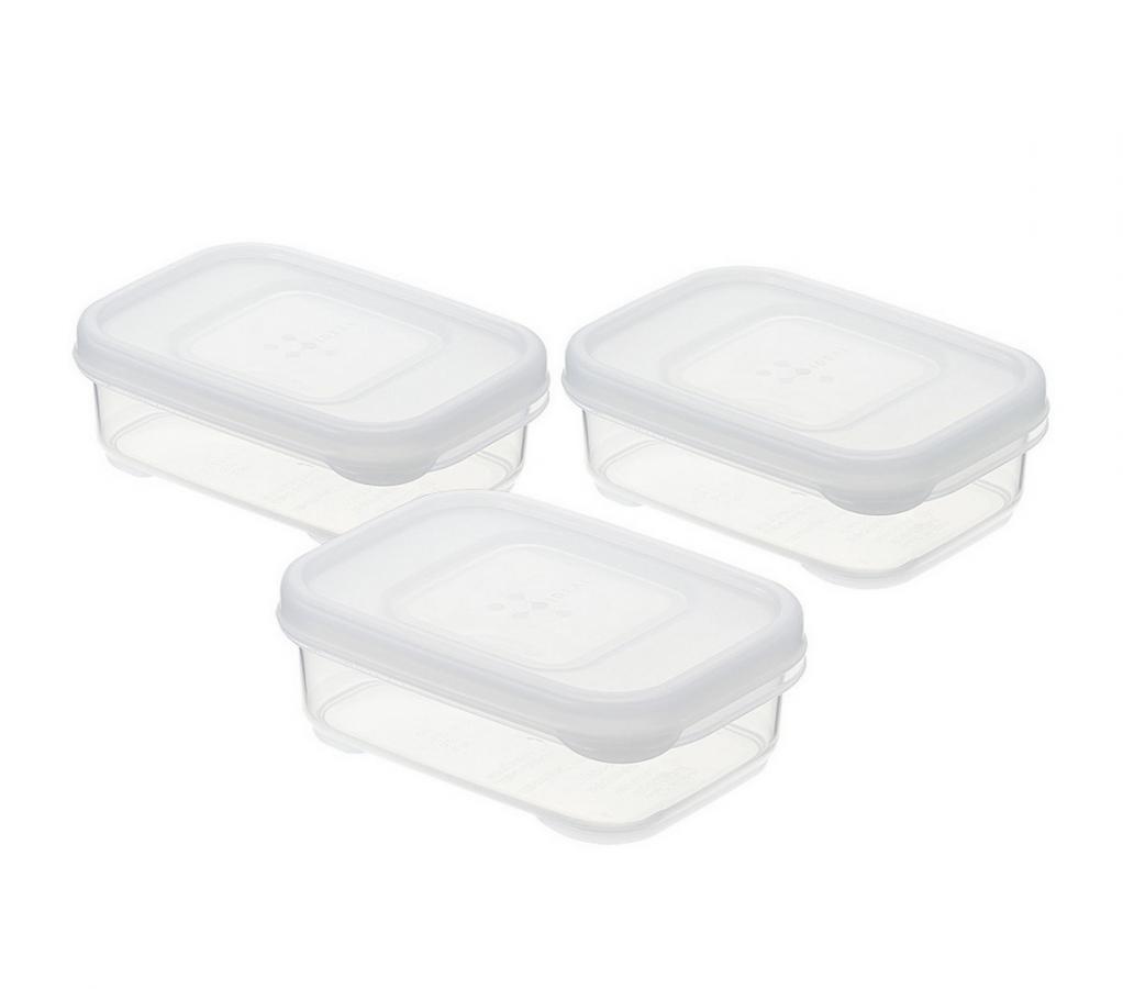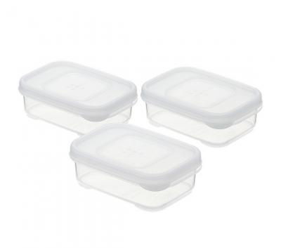 Íàáîð êîíòåéíåðîâ èç 3 øò èçãîòîâëåí èç âûñîêîïðî÷íîãî êà÷åñòâåííîãî ïëàñòèêà, êîòîðûé íå âûäåëÿåò òîêñè÷íûõ âåùåñòâ è íåïðèÿòíîãî çàïàõà. Ìàòåðèàë èçíîñîñòîåê, óñòîé÷èâ ê âíåøíèì âîçäåéñòâèÿì, îáëàäàåò âûñîêîé òåðìîñòîéêîñòüþ. Èäåàëüíî ïîäîéäóò, ÷òîáû âçÿòü ñ ñîáîé ïåðåêóñ èëè â êà÷åñòâå ¸ìêîñòè äëÿ ñîóñà. Ãåðìåòè÷íûå, êîìïàêòíûå, óäîáíî íîñèòü ñ ñîáîé. Ìîæíî èñïîëüçîâàòü â ìèêðîâîëíîâîé ïå÷è è äëÿ çàìîðîçêè. Áëàãîäàðÿ ñïåöèàëüíûì âûåìêàì íà êðûøêàõ âîçäóõ â õîëîäèëüíèêå ëåãêî áóäåò ïðîíèêàòü ìåæäó êîíòåéíåðàìè, åñëè âû ñîñòàâèòå èõ äðóã íà äðóãà. À áîðòèêè ïî êðàÿì íå äàäóò èì ñîñêîëüçíóòü è ïðèäàäóò óñòîé÷èâîñòè Îáúåì êàæäîãî êîíòåéíåðà ñîñòàâëÿåò 100 ìë ñ çàêðûòîé êðûøêîé, ñ îòêðûòîé 130 ìë. Òåìïåðàòóðíûé ðåæèì êîíòåéíåðîâ îò +120 äî -20 ãðàäóñîâ, êðûøêè îò 70 äî -30. Ñäåëàíî â ßïîíèè.