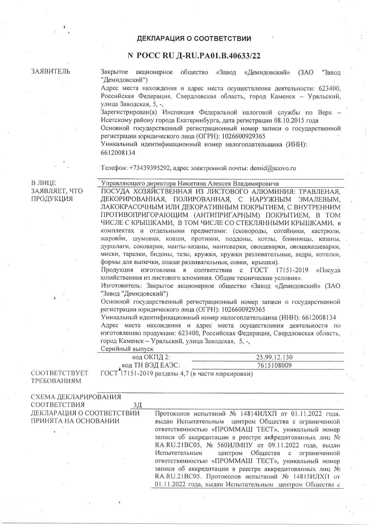 - Ïðîèçâîäèòåëü: ÄÅÌÈÄÎÂÑÊÈÉ