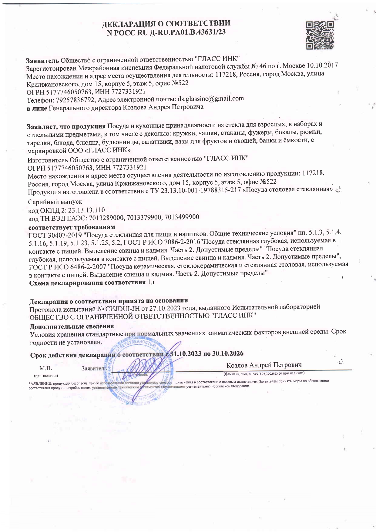 ÐÎÑÑ RU Ä-RU.ÐÀ01.Â.43631/23 äî 30/10/2026