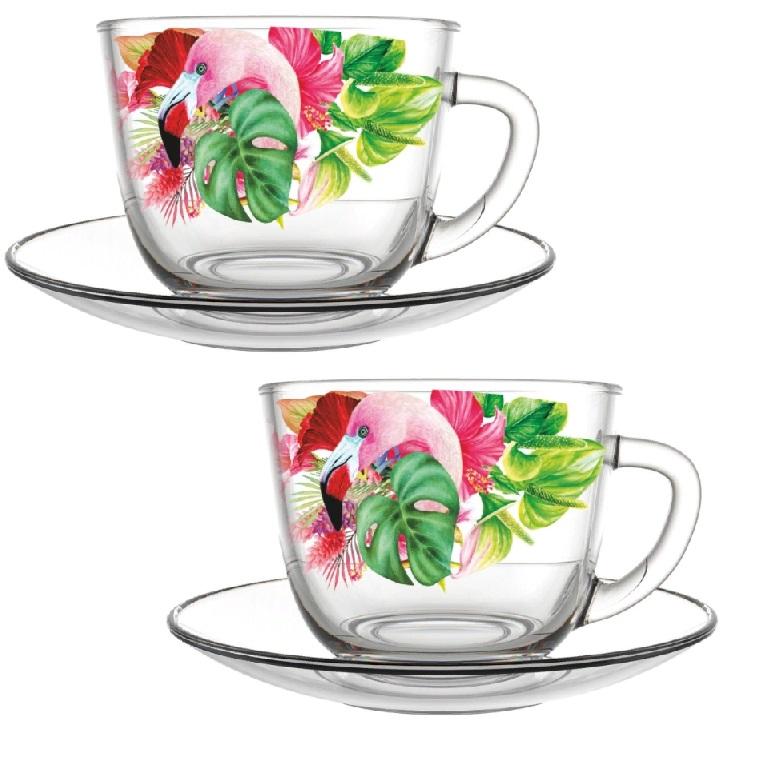 Íàáîð ÷àéíûé 4ïð (2 ÷àøêè+2 áëþäöà) ñòåêëî [ÄÓÝÒ] Ôëàìèíãî â òðîïèêàõ
