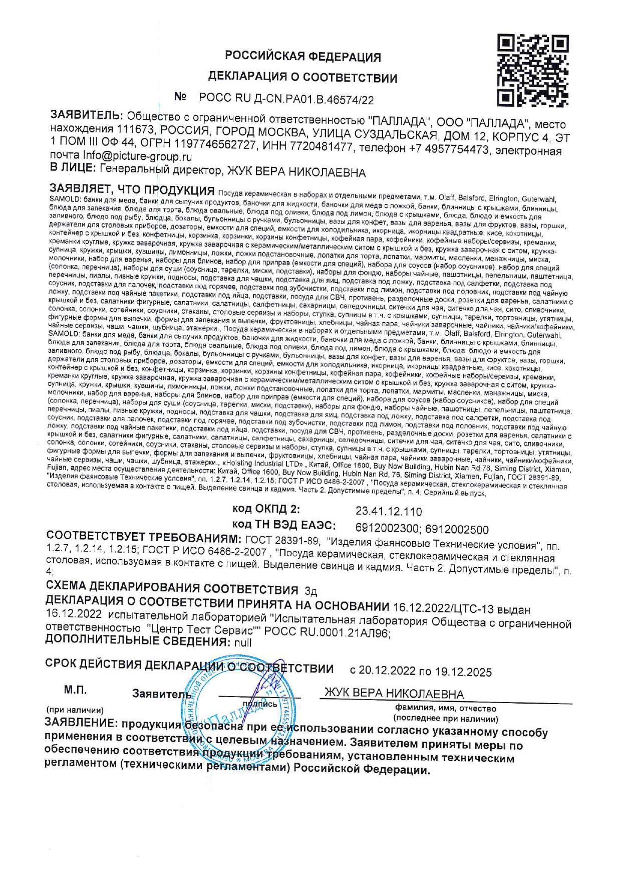 ÐÎÑÑ RU Ä-CN.PA01.Â.46574/22 äî 19/12/2025