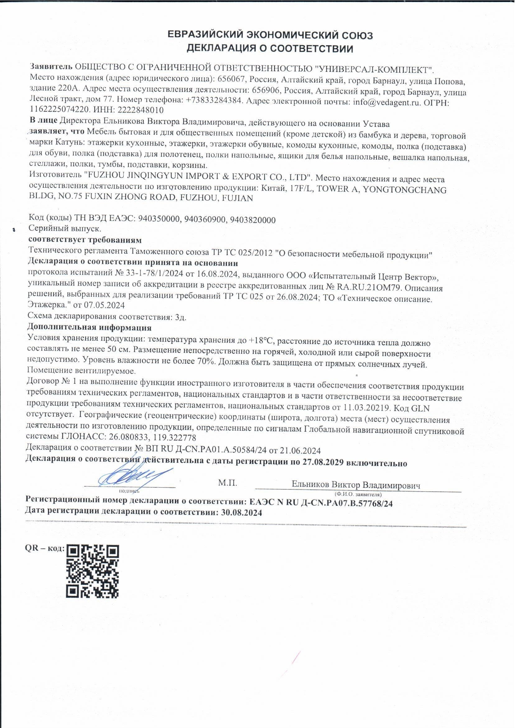 Äëÿ öåíèòåëåé ïðèðîäíûõ ìàòåðèàëîâ â èíòåðüåðå, ñòàíåò íåçàìåíèìîé ýòàæåðêà, âûïîëíåííàÿ èç íàòóðàëüíîãî áàìáóêà. Ýòàæåðêà óíèâåðñàëüíà, ïîäõîäèò äëÿ õðàíåíèÿ êóõîííûõ àêñåññóàðîâ, äåòñêèõ èãðóøåê èëè æå âàííûõ ïðèíàäëåæíîñòåé, êàæäûé íàéäåò äëÿ ñåáÿ ïðèìåíåíèå. Ýòàæåðêà îñíàùåíà òðåìÿ ÿðóñàìè. Ëåãêàÿ è ìîáèëüíàÿ êîíñòðóêöèÿ ýòàæåðêè ñîáèðàåòñÿ â äâà êëèêà. Èíñòðóêöèÿ ïî ñáîðêå â óïàêîâêå. Ðàçìåðû èçäåëèÿ 30*30*70,5 ñì.