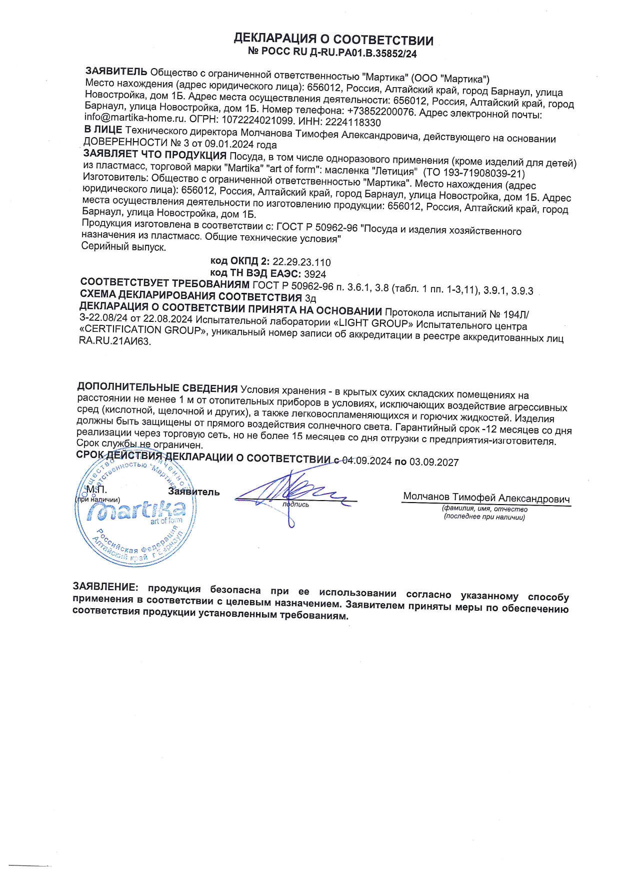 ÐÎÑÑ RU Ä-RU.PA01.B.35852/24 äî 03/09/2027