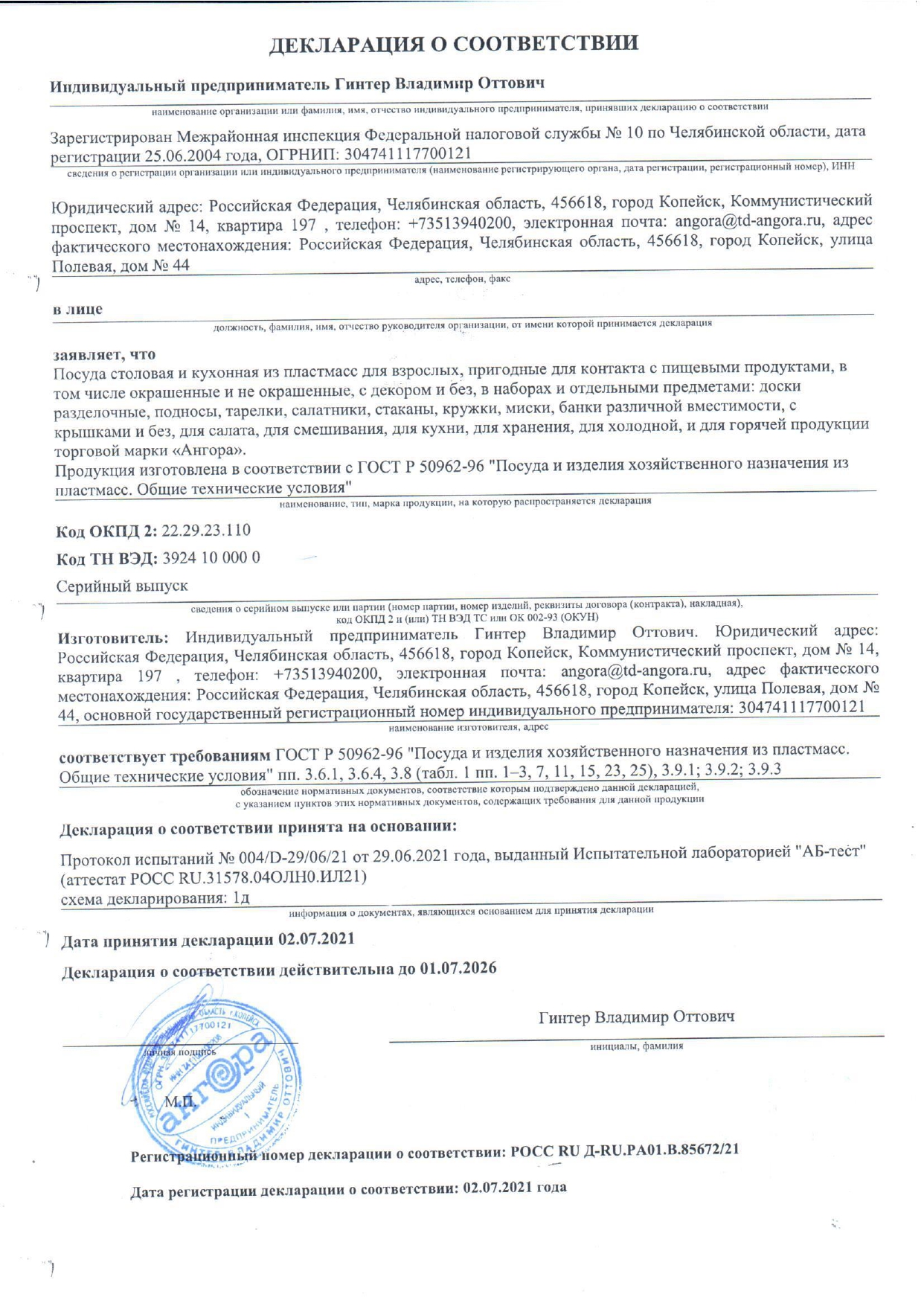 ÐÎÑÑ RU Ä-RU.PA01.B.85672/21 äî 01/07/2026