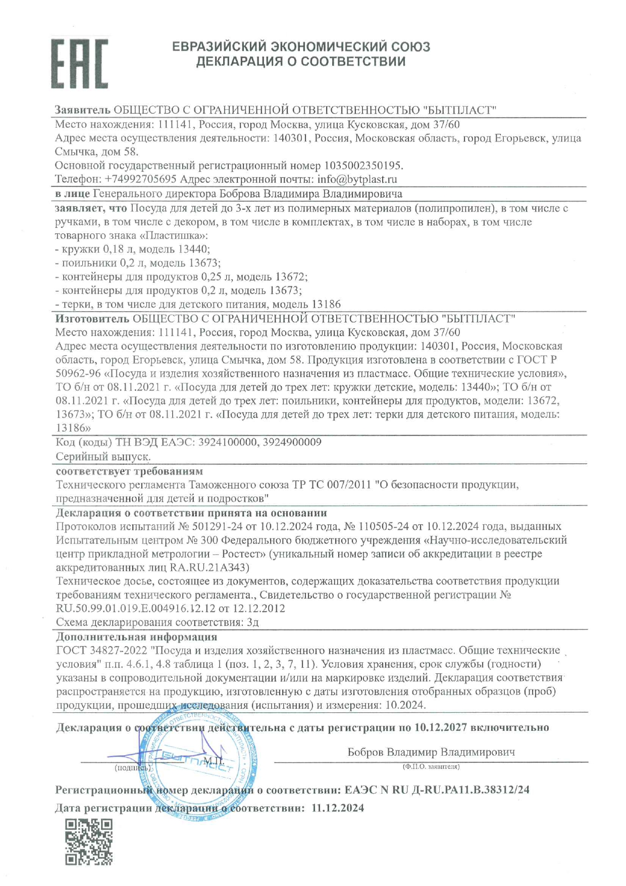 ÅÀÝÑ N RU Ä-RU.PA11.Â.38312/24 äî 10/12/2027