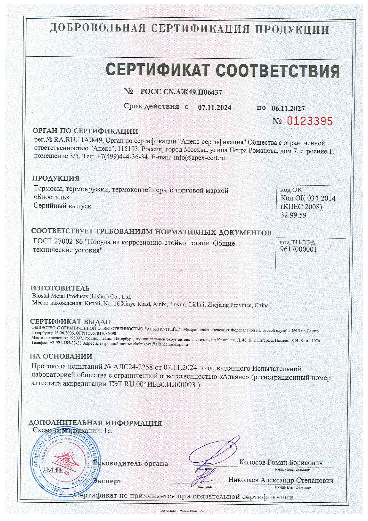 ÐÎÑÑ CN.ÀÆ49.Í06437 äî 06/11/2027