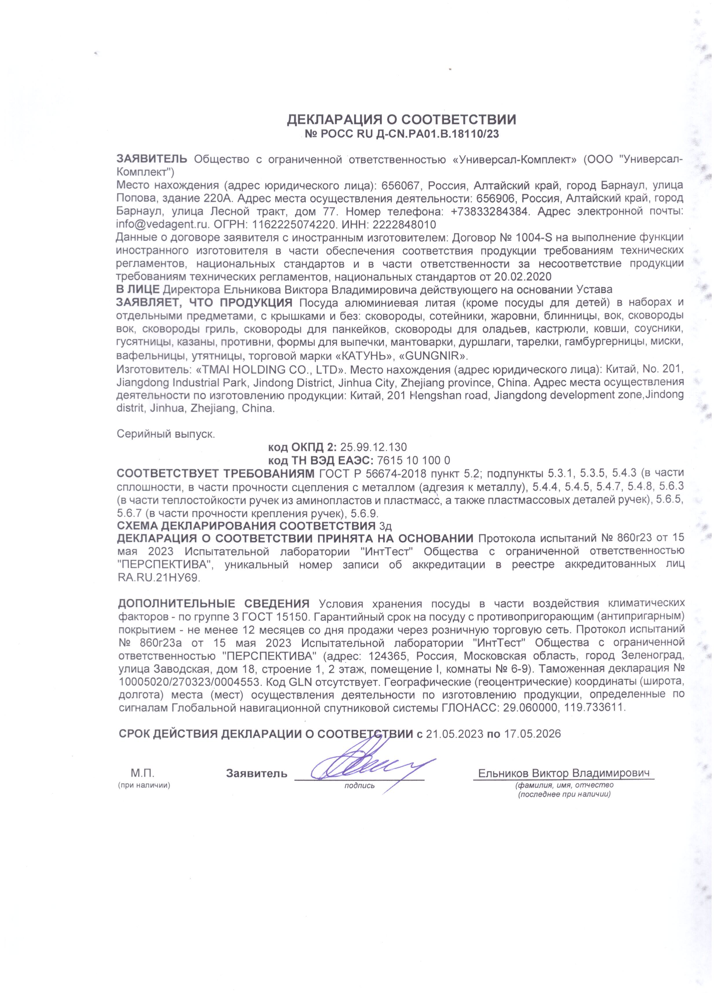 ÐÎÑÑ RU Ä-CN.ÐÀ01.B.18110/23 äî 17/05/2026