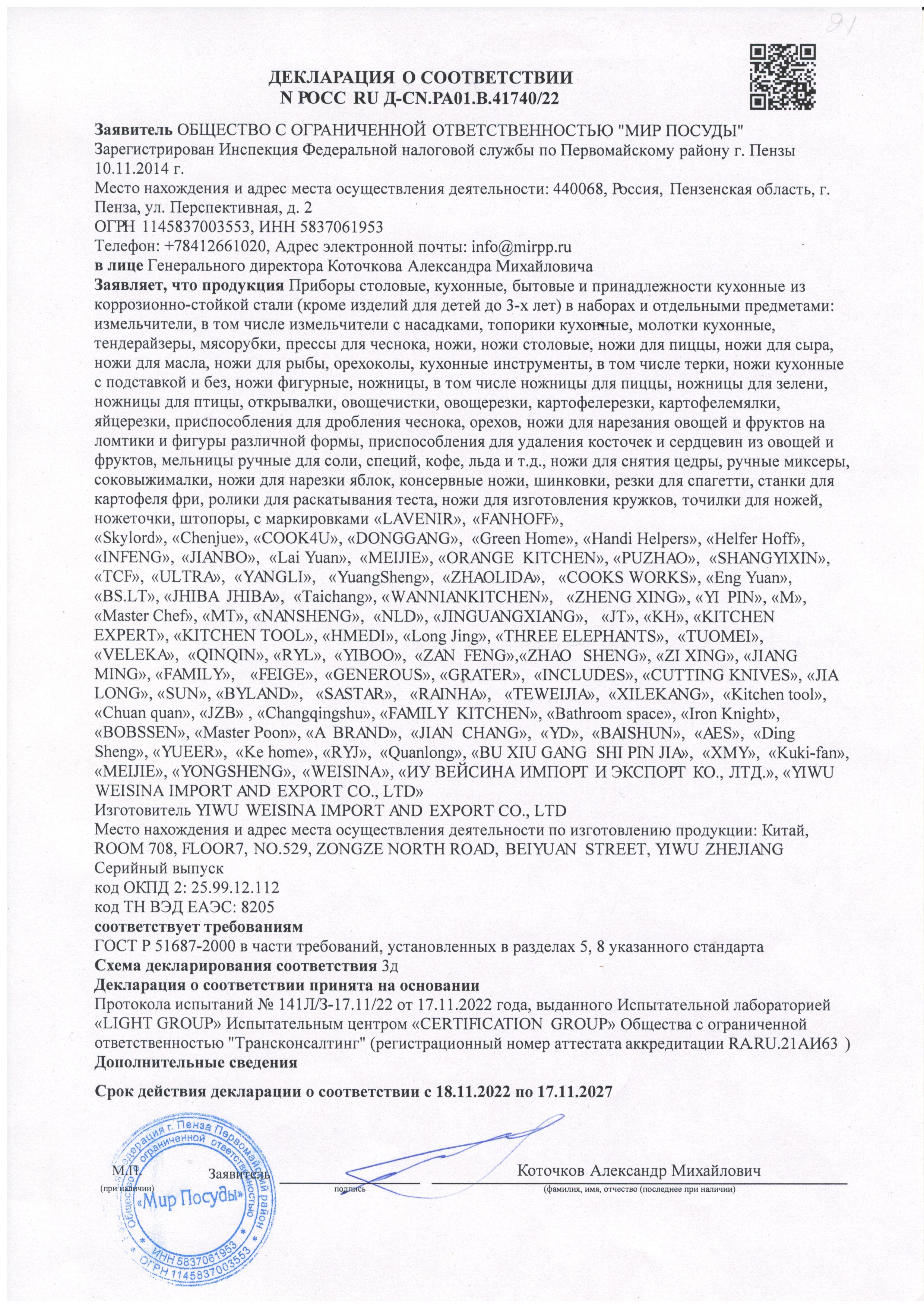ÐÎÑÑ RU Ä-ÑN.PA01.B.41740/22 äî 17/11/2027
