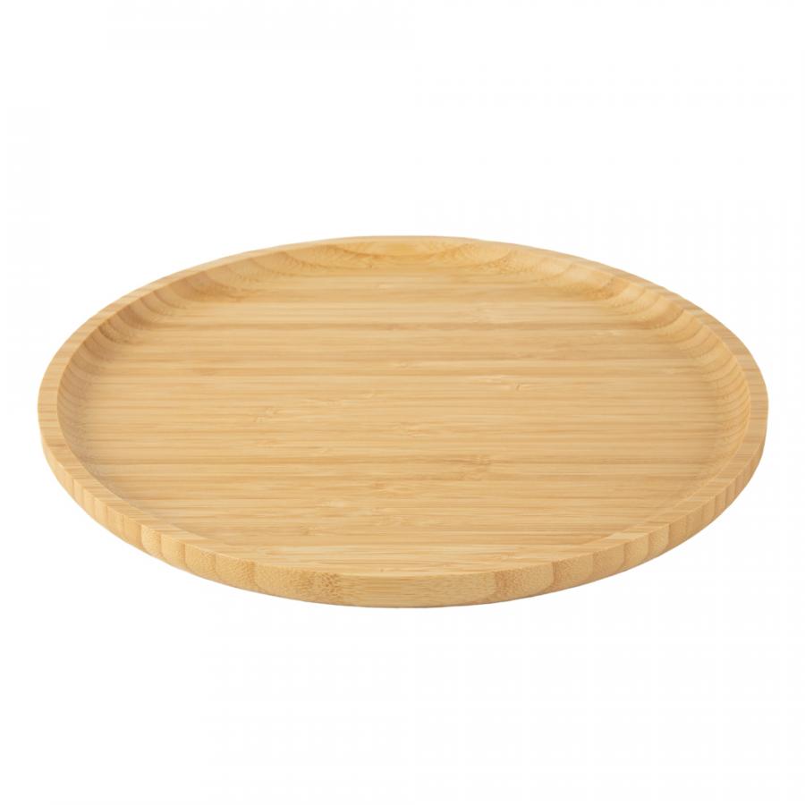 Ñåðâèðîâî÷íàÿ òàðåëêà èçãîòîâëåíà èç äîëãîâå÷íîãî è ýêîëîãè÷åñêè ÷èñòîãî ìàòåðèàëà - íàòóðàëüíîãî áàìáóêà. Íåñìîòðÿ íà òî, ÷òî äåðåâÿííàÿ ìåíàæíèöà òîíêàÿ è íåâåñîìàÿ, îíà êðàéíå ïðî÷íàÿ è ñïîñîáíà âûäåðæàòü î÷åíü áîëüøèå íàãðóçêè. Êðóãëàÿ òàðåëêà èç äåðåâà ìîæåò çàìåíèòü ñîáîé ïîäíîñ, à åå îáðàòíóþ ñòîðîíó ìîæíî èñïîëüçîâàòü êàê ðàçäåëî÷íóþ äîñêó, êîòîðàÿ ïðèãîäèòñÿ Âàì ïðè íàðåçêå ïðîäóêòîâ èëè ïðèãîòîâëåíèè ïðàçäíè÷íûõ óãîùåíèé. Ìåíàæíèöà èç áàìáóêà ñî÷åòàåò â ñåáå ôóíêöèîíàëüíîñòü è ýñòåòè÷åñêóþ ïðèâëåêàòåëüíîñòü, ÷òîáû óäîâëåòâîðèòü âñå Âàøè ïîòðåáíîñòè â ïðåçåíòàöèè ðàçëè÷íûõ çàêóñîê è áëþä. Êðàñèâûé äèçàéí è òåïëûé îòòåíîê äåðåâà ñîçäàäóò âåëèêîëåïíóþ àòìîñôåðó íà Âàøåì ñòîëå. Èçäåëèÿ èç áàìáóêà íå ïîäâåðæåíû îêèñëåíèþ, îíè íå âïèòûâàþò è íå âûäåëÿþò çàïàõè, íå âëèÿþò íà âêóñîâûå ñâîéñòâà ïðîäóêòîâ è äîëãîå âðåìÿ íå òåðÿþò ñâîé áåçóïðå÷íûé âíåøíèé âèä. Âî èçáåæàíèå ñîêðàùåíèÿ ñðîêà ñëóæáû è óõóäøåíèÿ êà÷åñòâ íå ðåêîìåíäóåòñÿ ìûòü èçäåëèÿ èç áàìáóêà â ïîñóäîìîå÷íîé ìàøèíå, îñòàâëÿòü íàäîëãî â âîäå, à òà