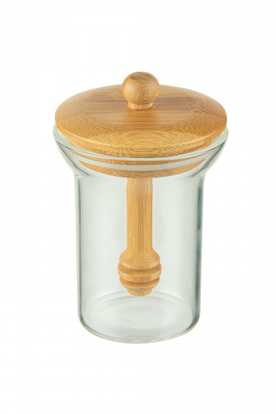 Ãîðøî÷åê ïðåäíàçíà÷åí äëÿ õðàíåíèÿ, à òàêæå ñåðâèðîâêè ìåäà, âàðåíüÿ è äæåìà. Áàíêà äëÿ ìåäà èçãîòîâëåíà èç óäàðîïðî÷íîãî ñòåêëà, à åå ãåðìåòè÷íîå çàêðûâàíèå îáåñïå÷èâàåò ñïåöèàëüíàÿ ñèëèêîíîâàÿ âñòàâêà íà êðûøêå - ýòî ïîçâîëÿåò ñîõðàíèòü ñâåæåñòü è àðîìàò ïðîäóêòà íà äîëãîå âðåìÿ. Ñàìà æå êðûøêà, êàê è ñïåöèàëüíàÿ ëîæå÷êà-âåðåòåíî, âûïîëíåíà èç íàòóðàëüíîãî áàìáóêà. Ïîëüçîâàòüñÿ òàêîé ëîæêîé î÷åíü ïðîñòî - ñëåãêà ïîêðó÷èâàÿ, îáìàêíèòå ïàëî÷êó â åìêîñòü ñ ìåäîì è ïåðåíåñèòå åå íà áóòåðáðîä èëè â êðóæêó ñ ÷àåì. Êîãäà Âû ïåðåñòàíåòå âðàùàòü âåðåòåíî, ìåä áóäåò ëåãêî ñòåêàòü èç ñïåöèàëüíûõ ïðîðåçåé. Òàêàÿ ëîæå÷êà ïîçâîëÿåò ñîäåðæàòü áàíêó â ÷èñòîòå - ìîæíî èçáåæàòü ïîò¸êîâ, ïîòîìó ÷òî âåðåòåíî íå íóæíî âûòèðàòü î êðàé åìêîñòè, ÷òîáû îñòàíîâèòü ñòåêàíèå ïðîäóêòà. Êðîìå òîãî, òàê Âû ýêîíîìèòå ïðîäóêò - âûòèðàòü ïîò¸êøèå îñòàòêè ñëàäîñòè è âûêèäûâàòü èõ íå ïðèõîäèòñÿ. À â ãîðøî÷åê ñ ìåäîì áîëüøå íå ïîïàäóò ïîñòîðîííèå ïðîäóêòû ñ ëîæêè, ÷òî ðåøèò ïðîáëåìó åãî çàêèñàíèÿ. Òàêàÿ áàíêà íå òîëüêî îáåñïå÷èò íàäåæíóþ çàùèò