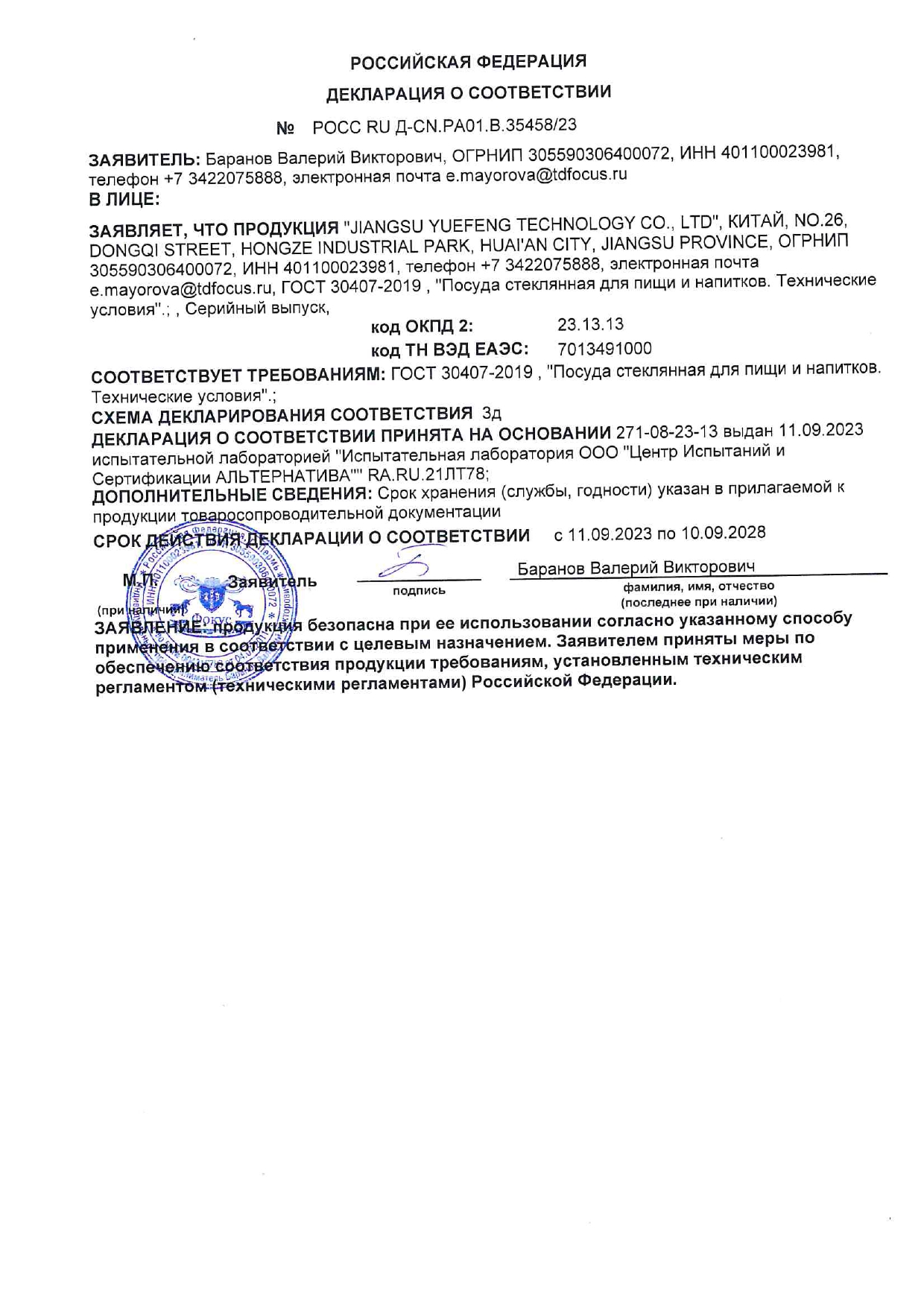 ÐÎÑÑ RU Ä-CN.ÀÄ37.Â.35111/20 Î äî 10/09/2028