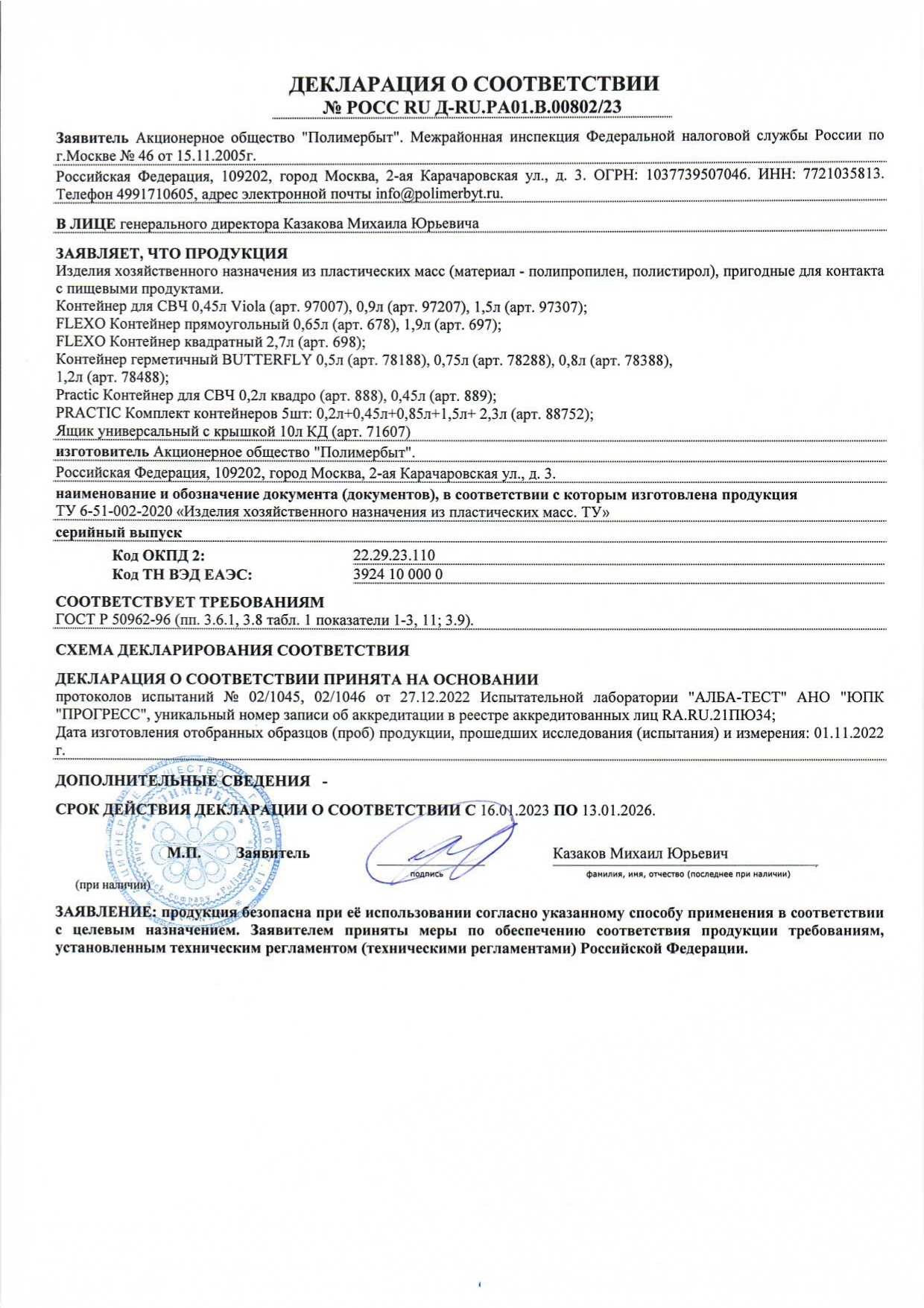 ÐÎÑÑ RU Ä-RU.PA01.B.00802/23 äî 13/01/2026