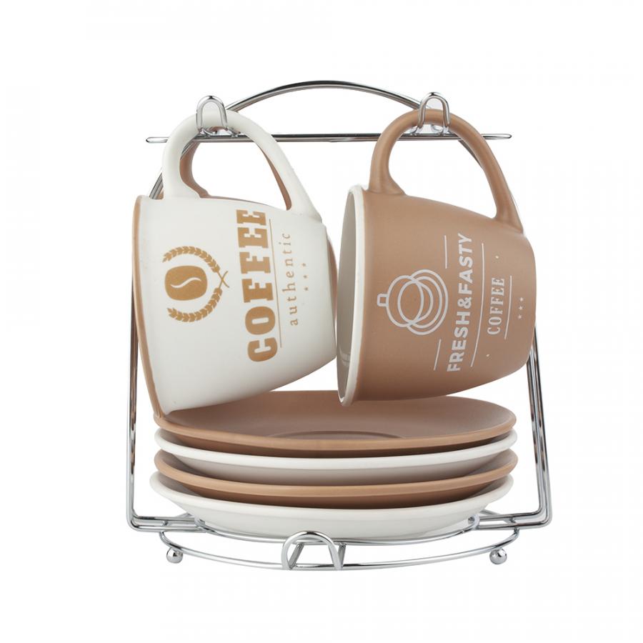 Íàáîð êîôåéíûé 8ïð ìåò/ïîäñò (4 ÷àøêè + 4 áëþäöà) [Coffee] êàðàìåëüíûé+áåëûé